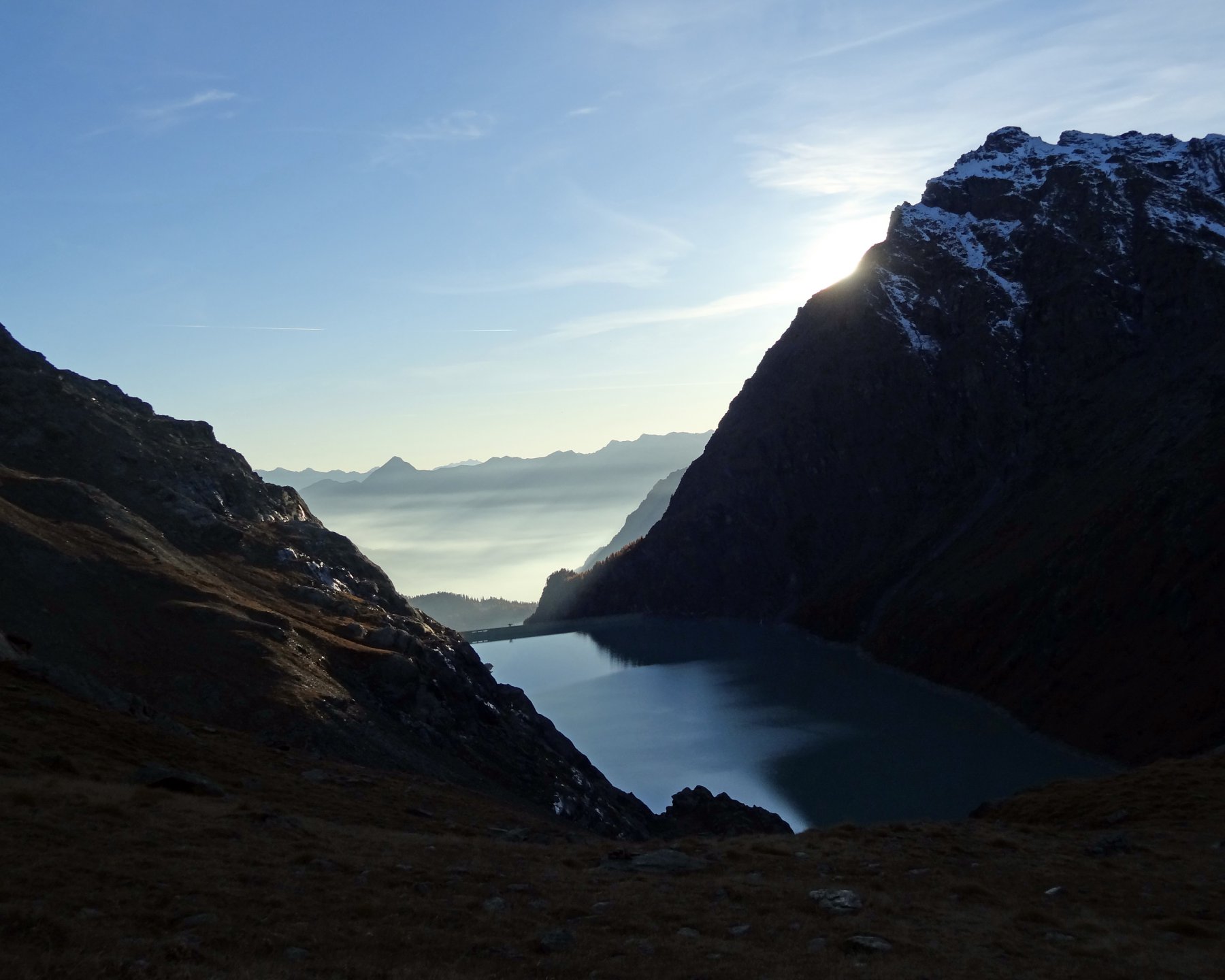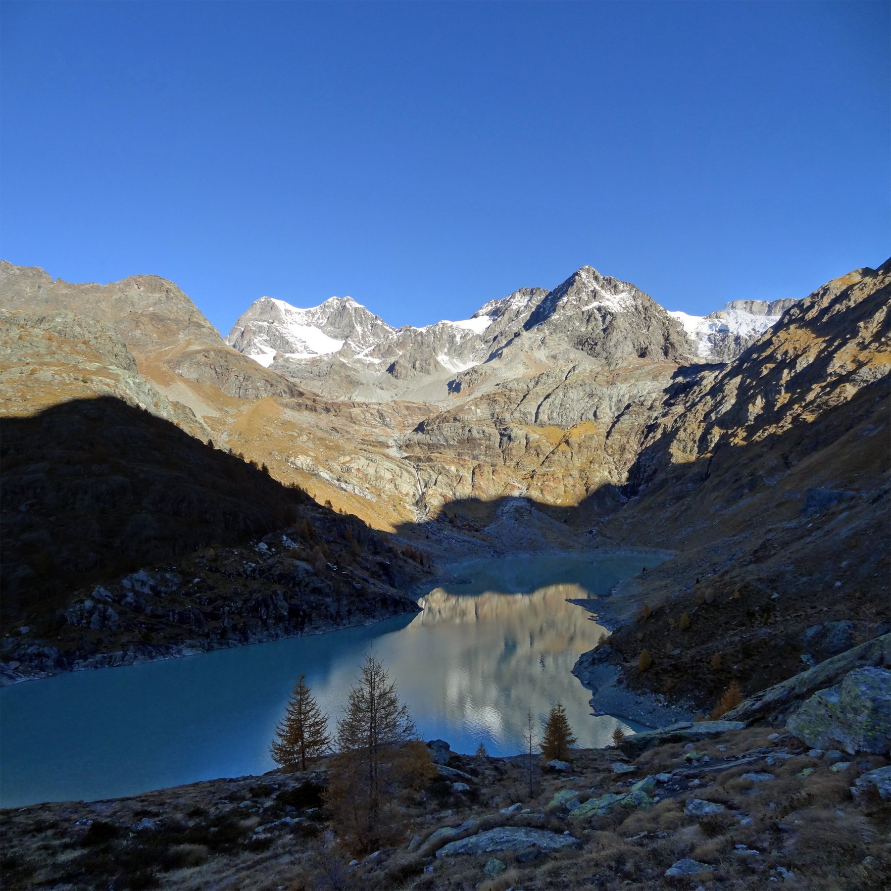 Dal bivacco seguire il labile sentierino segnalato da ometti che seguendo la cresta di confine IT-CH porta ad una zona di pozze d’acqua ai piedi della Cima Val Fontana.