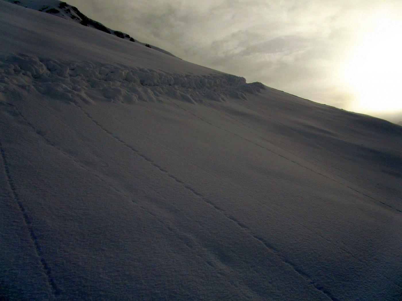 E’ da qualche giorno che nevica e si vede. Anche oggi per tutto il giorno sono caduti fiocchi di neve e per i due scialp che salivano doveva essere proprio una goduria passare sul manto immaccolato.