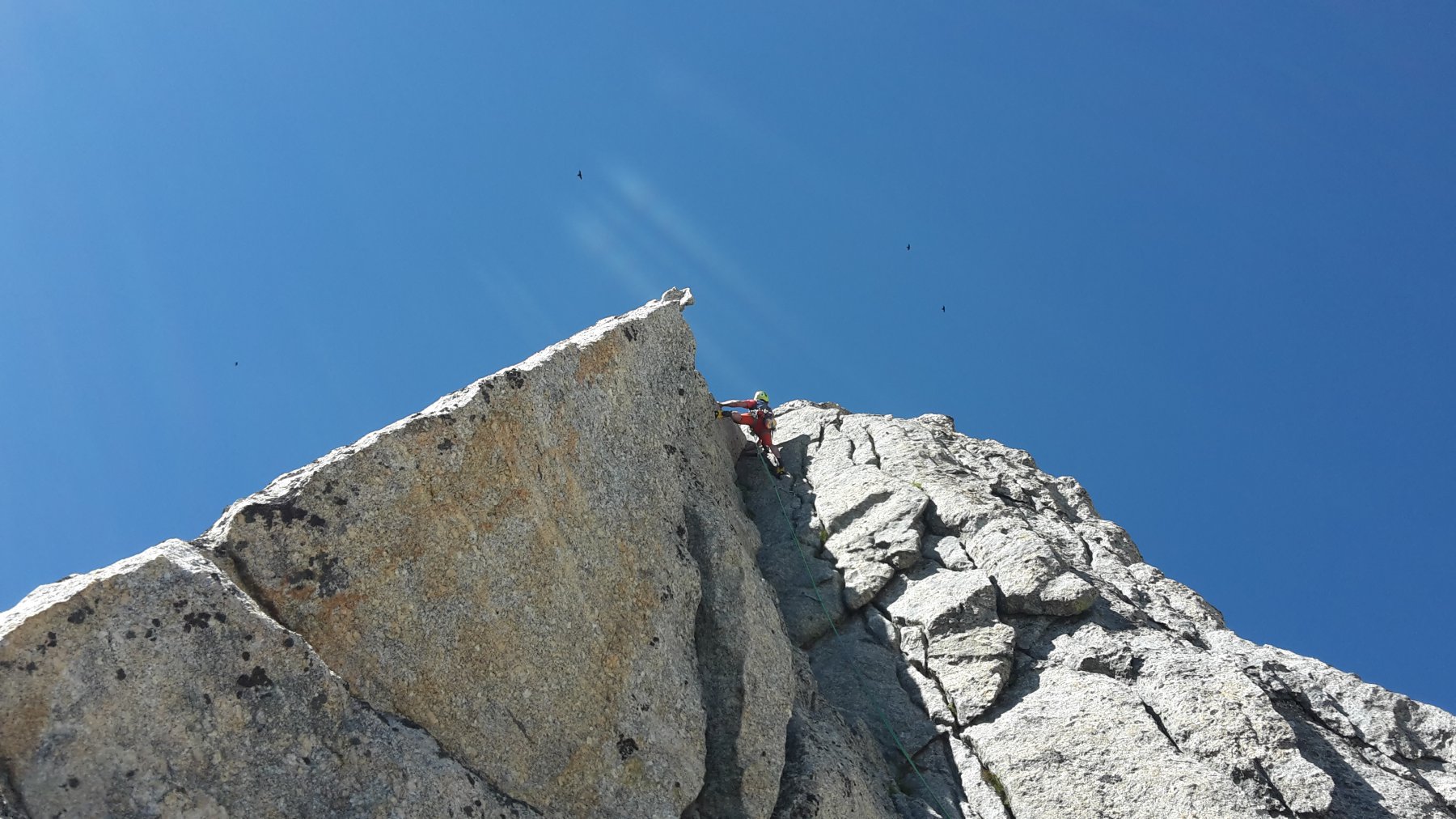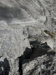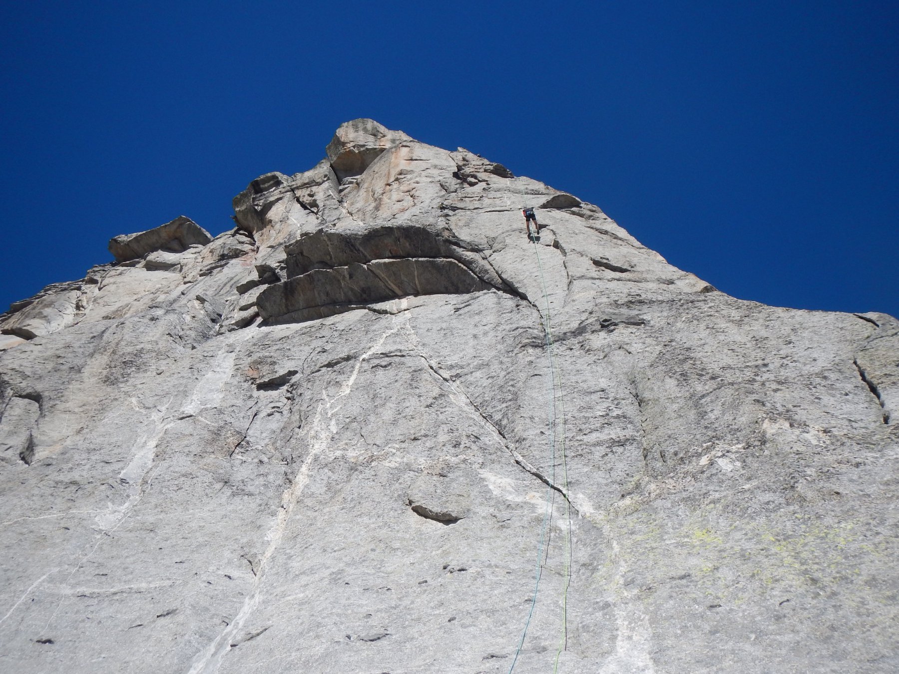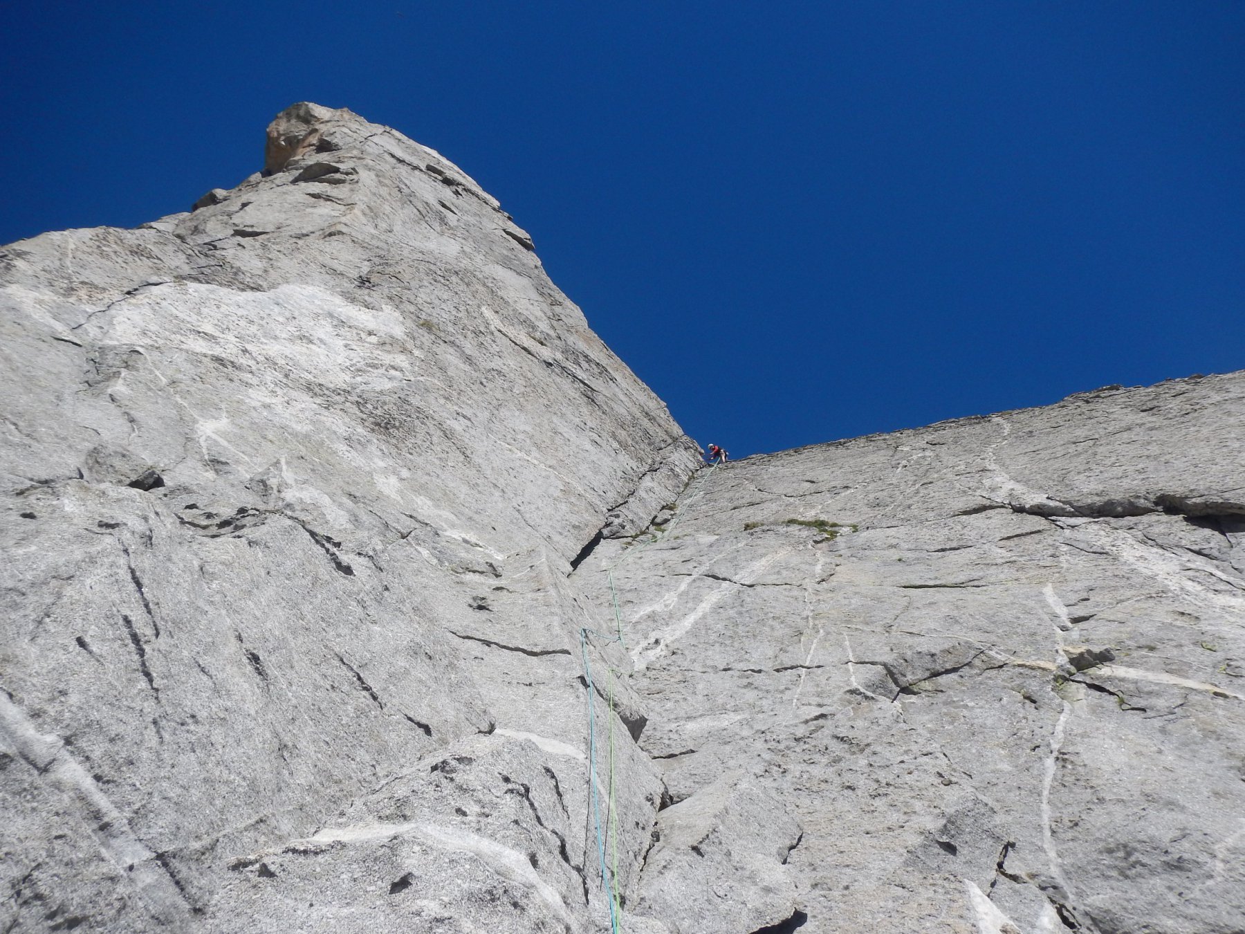3° tiro: si prosegue nel diedro fino al suo termine sosta con 2 spit. (35m. V+ – VI – V 5 spit)