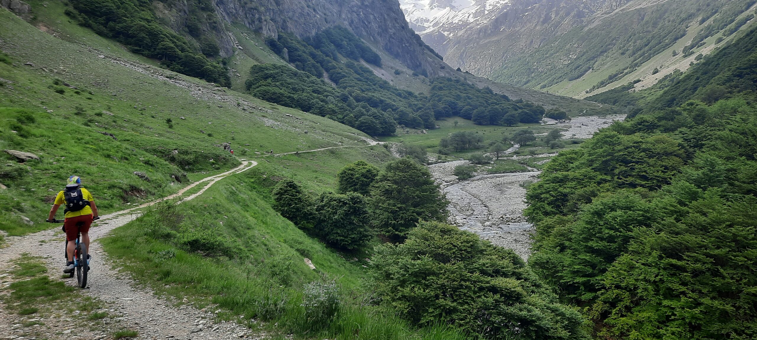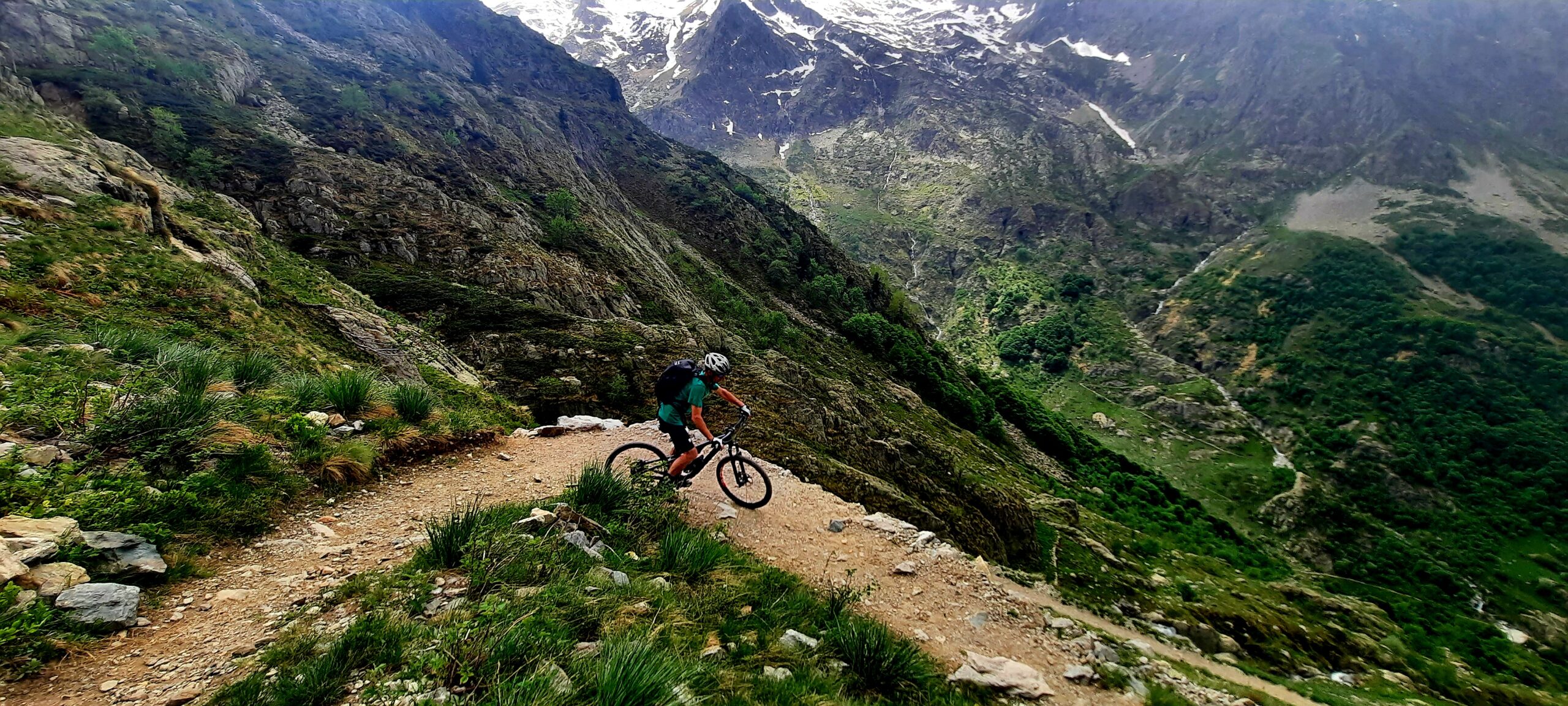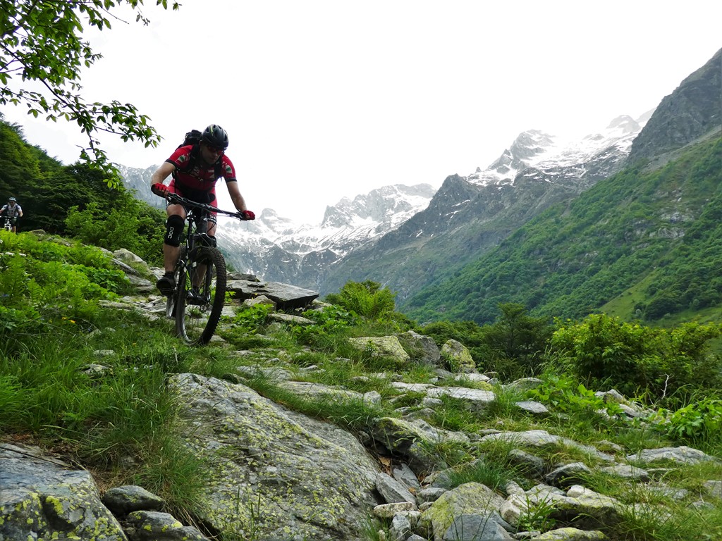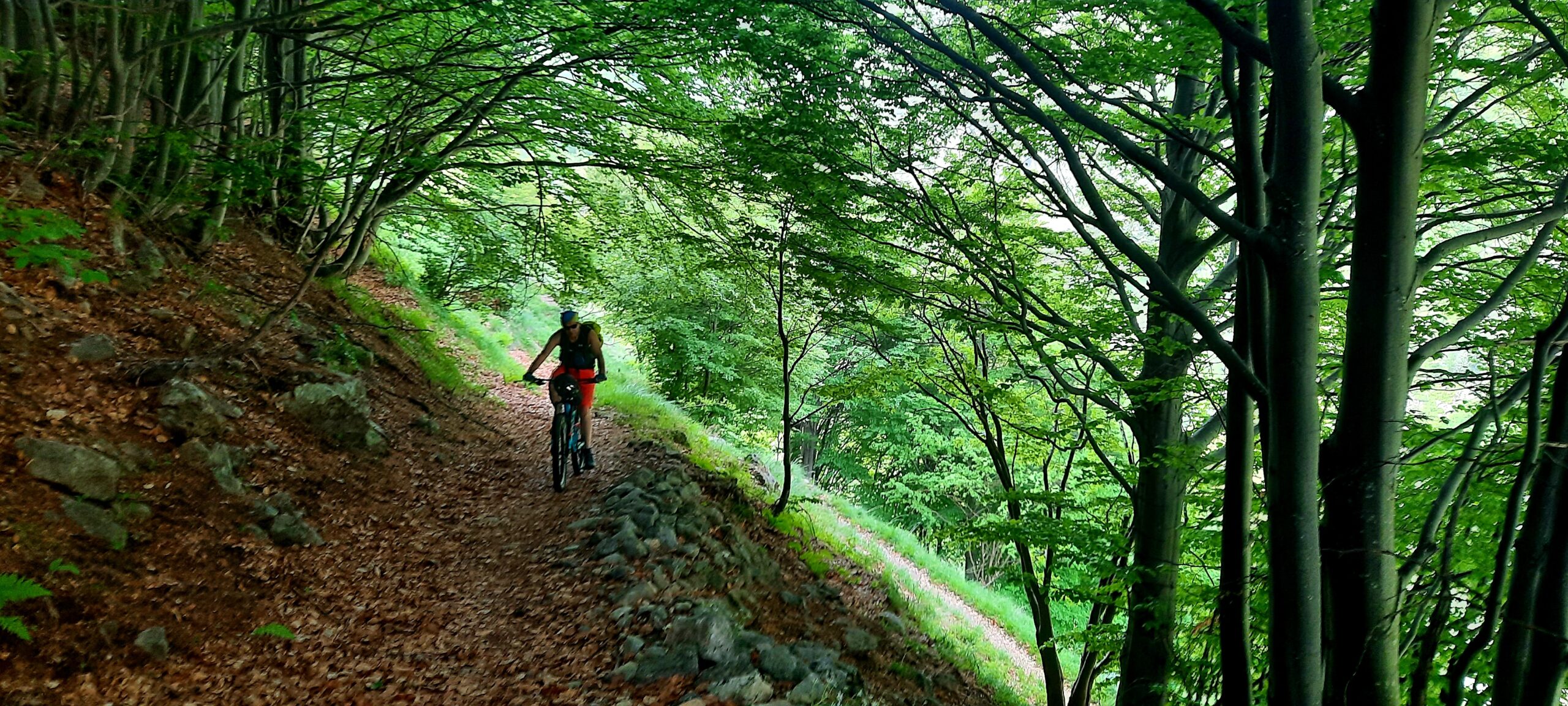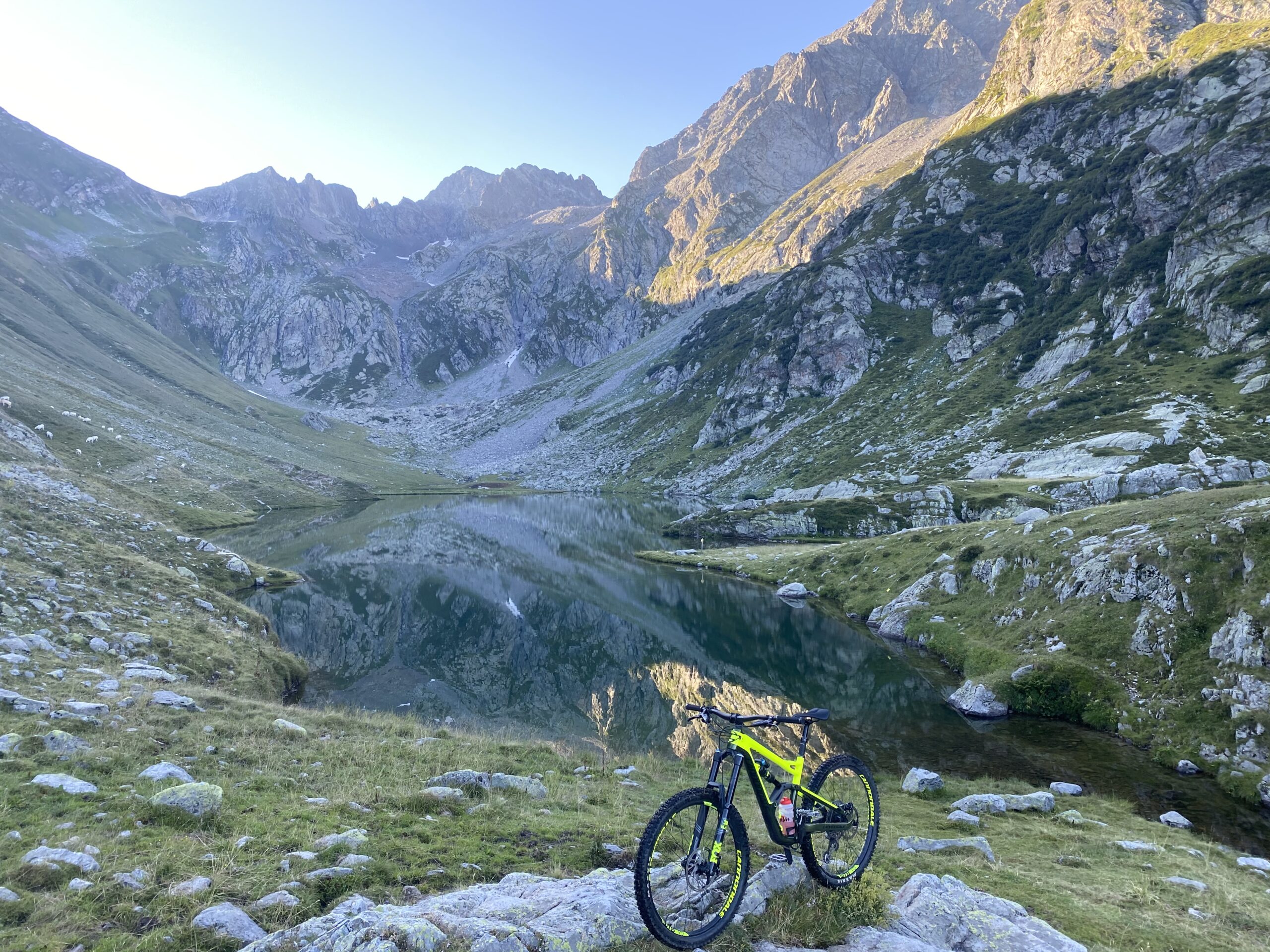 Discesa: lungo l’itinerario di salita. a parte i primo 800m dal lago che richiedono capacità trialistiche e equilibrio, il resto è un fantastico e scorrevole single-track fino all’auto.