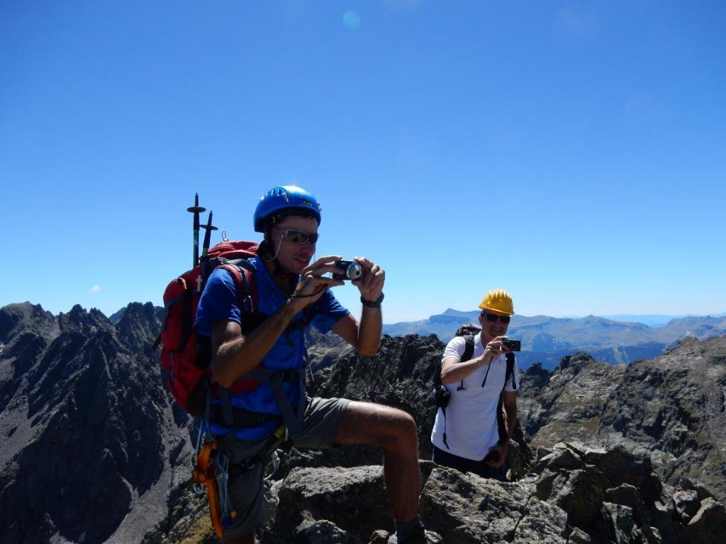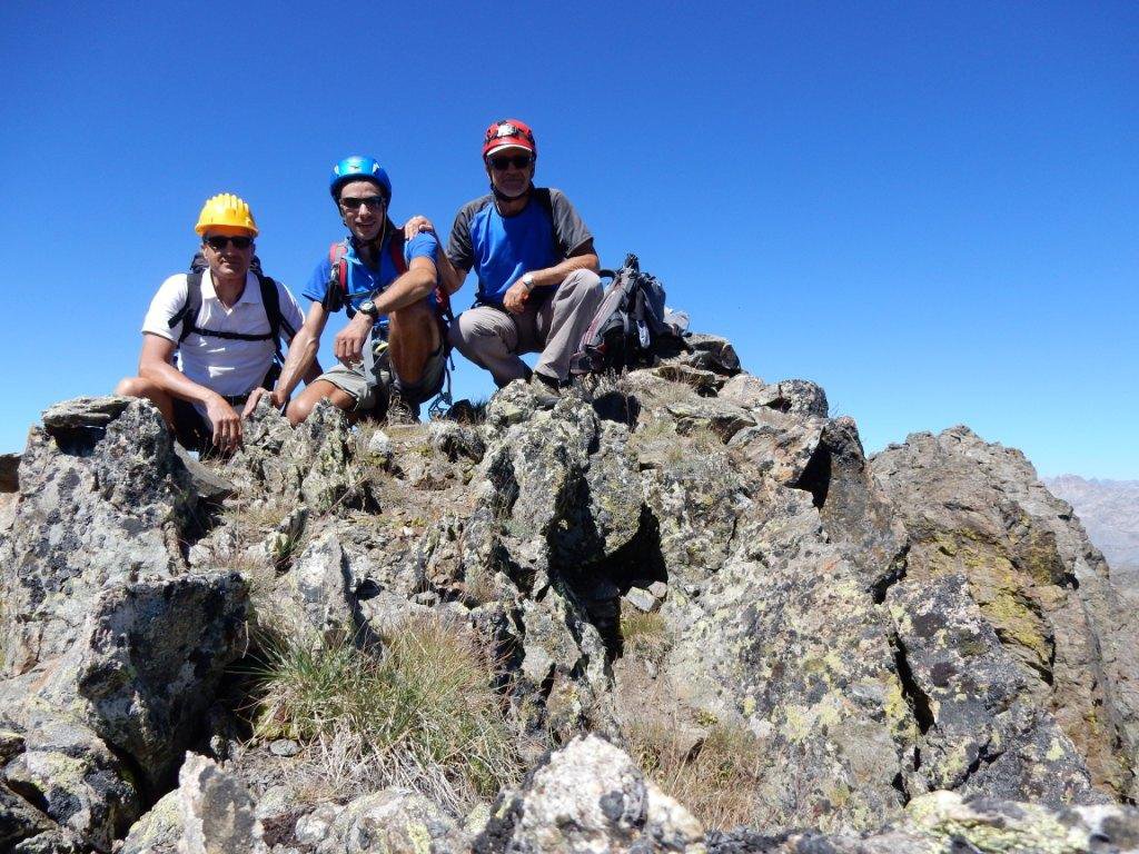 Seguito costantemente gli ometti…(purtroppo) oltre il primo torrione. Risaliti poi obbligatoriamente sempre lato Tinèe per un canale quasi perpendicolare alla cima. L’errore (involontario) è però servito ad Andrea, che attrezzandoci un tiro di corda per superare un passaggio delicato, ha dato prova delle sue già buone qualità alpinistiche. Bravo Andre! Percorso a ritroso l’itinerario corretto per il ritorno al Passo di Vens, traversando le quote che avremmo dovuto fare in salita. Con i soci Luca e Andrea.