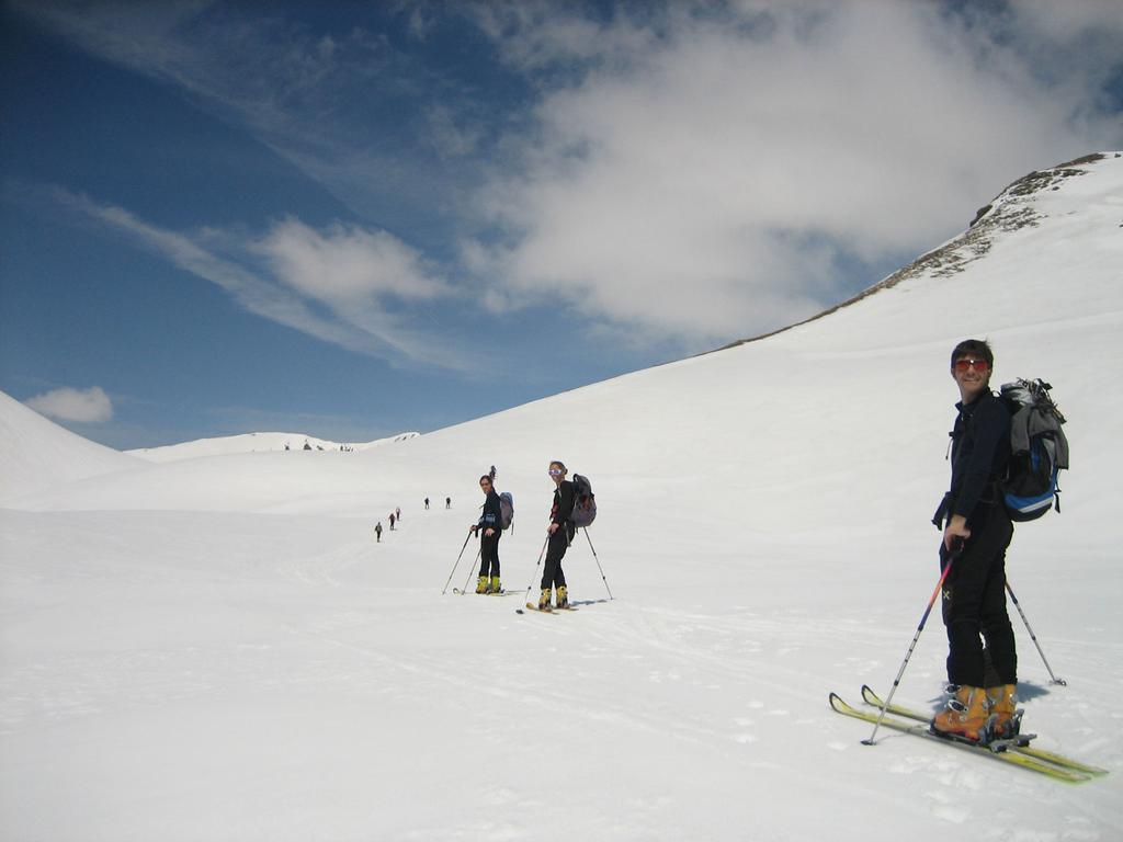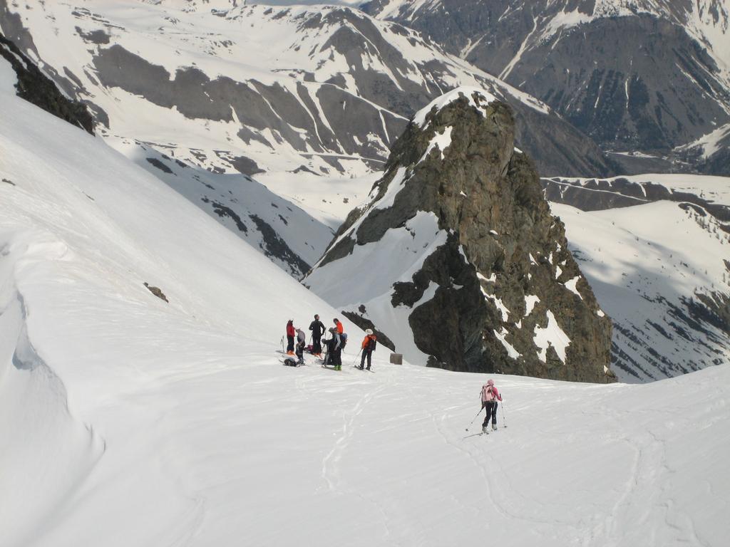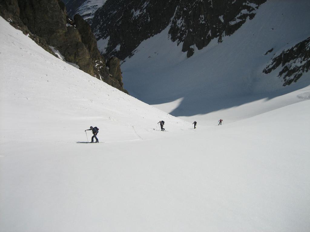 Proseguire lasciando alla vostra dx il rif.per il vallone superiore di Pontebernardo, lungo i pendii della sx orografica seguendo il tratto con larici radi poi portarsi nel mezzo del vallone, quando la pendenza si fa più lieve, fino al cippo C.Giusta (2514 m). Proseguire in dir.SO per poco(2600 m) e prendere l’ampio canale che a dx scende dal colle di Vens NO, nella parte finale possono essere utili i ramponi (30°-40°)per superare la cornice quasi sempre presente (2790 m).Dal colle scendere il Vallone di vens fino a quota 2450 m. circa e da un ampio pianoro a dx del lago Fourchas risalire in direzione NO verso il Collet de Tortisse (2591 m) a nord del grande Lago di Vens. Superato il colle proseguire a dx in direz. N-NE e attraversare un ripido pendio perdendo leggermente quota e si arriva al Colle del Ferro (2584 m.5-6 ore).