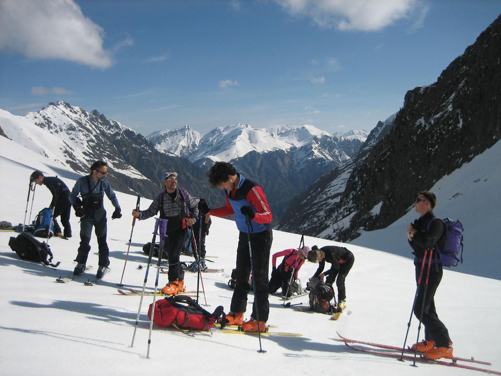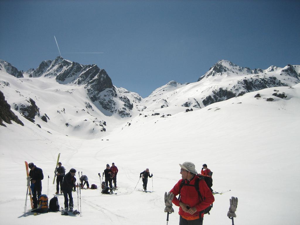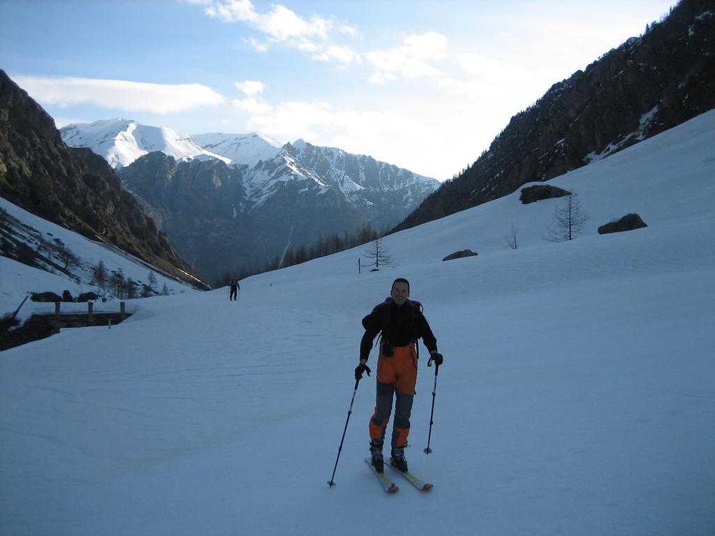 Nella parte iniziale della gita la neve è portante fino al sorgere del sole ma non è ancora trasformata a causa delle recenti nevicate.Siamo arrivati al colle con gli sci ai piedi e senza l’ausilio dei coltelli fino alla base della cornice che si riesce a superare anche con gli sci.Nel versante francese grazie ad un buon fondo rimanendo nel centro del vallone abbiamo sciato più che bene.Non è andata così la discesa del Vallone Forneris caratterizzata da neve pesante soprattutto in alto dove si deve ancora trasformare.