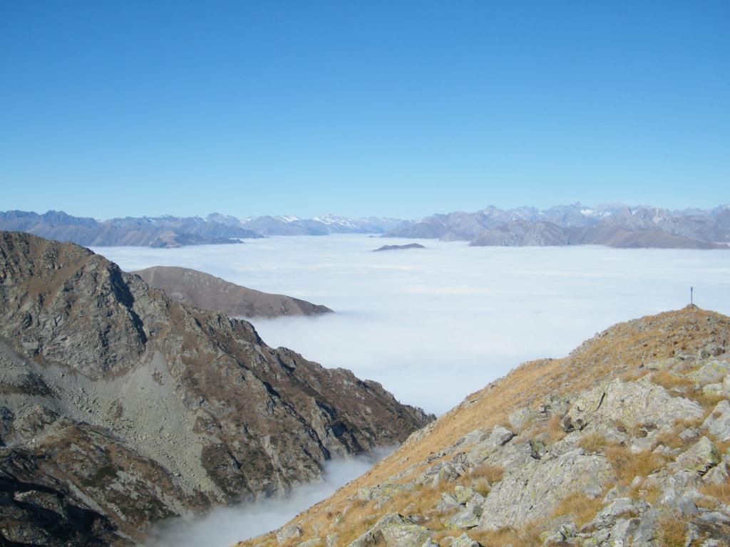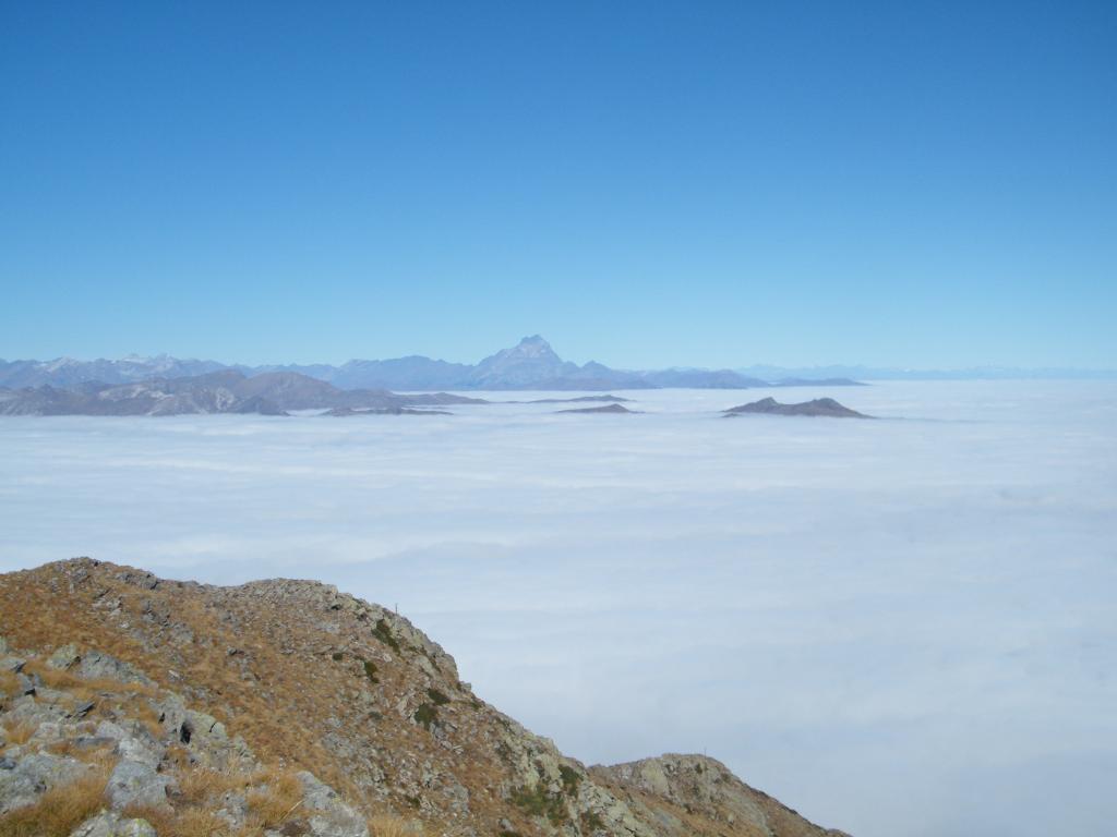 sopra cielo terso,visibili le alpi fino al monte rosa e sotto un mare di nubi con alcune cime che sembravano isole
