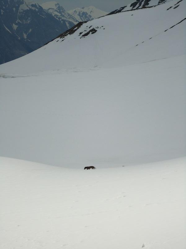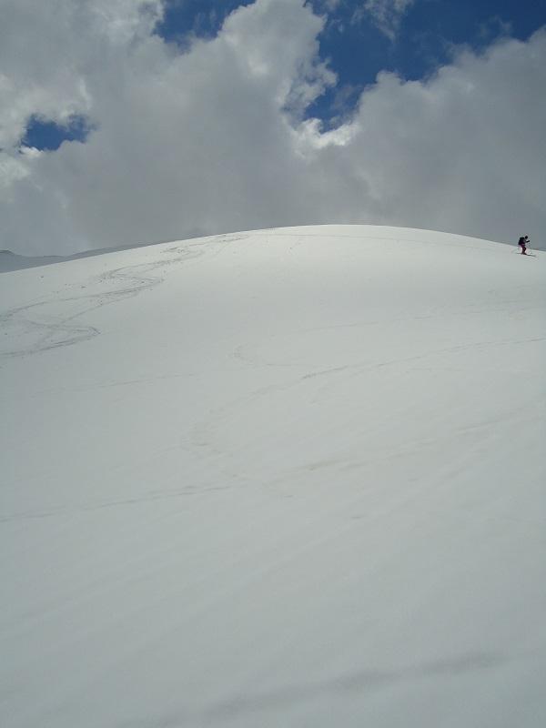 Discesa più o meno lungo l’itinerario di salita con neve troppo marcia che nei punti più ripidi sotto il colletto tendeva a partire in forma di piccoli distacchi di neve bagnata. Nel complesso bella gita in bellissimo ambiente; tante marmotte, una ha la tana proprio un metro sotto la croce di vetta :-). Per quanto riguarda la neve, si è già visto di meglio…