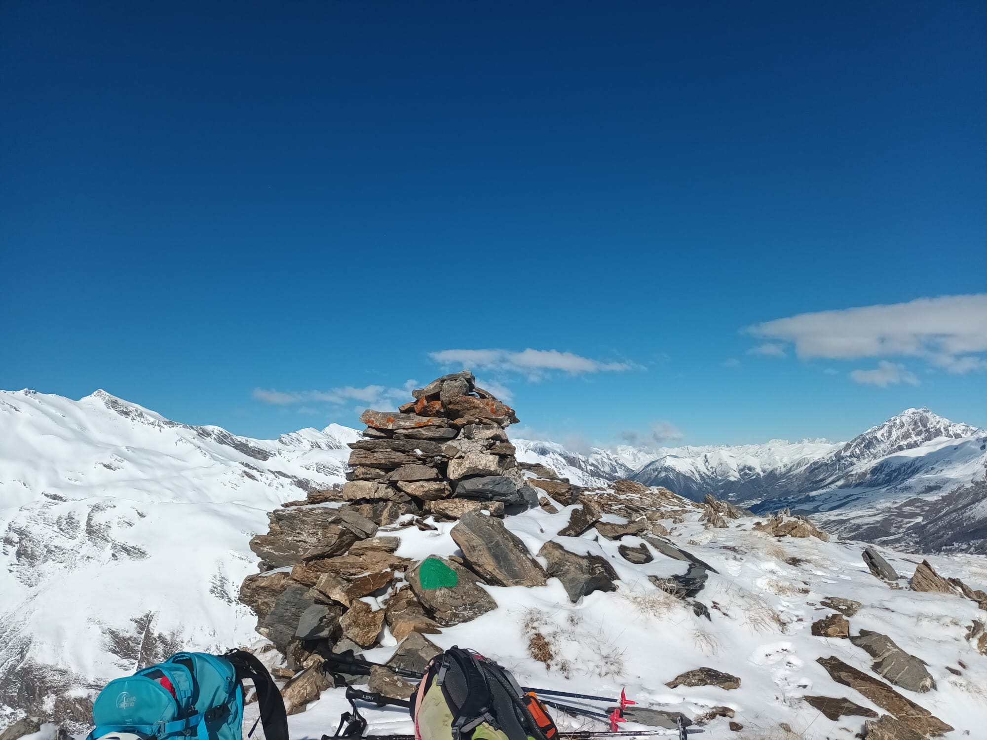 Nella notte al colle sono caduti 5/10 cm di neve farinosa. Prima del Ventasuso abbiamo raggiunto la Punta Rouet 2540 m circa. Discesa su farina e fondo portante. Ripello verso il Ventasuso e nuova discesa, tenendoci molto a dx, sempre su ottima farina, più umida sui pendii immediatamente sopra il lago.