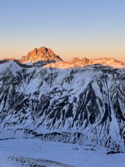 Risalito quindi a ritroso e sceso dalla normale all’imbrunire, su neve variabile nel complesso più che discreta.