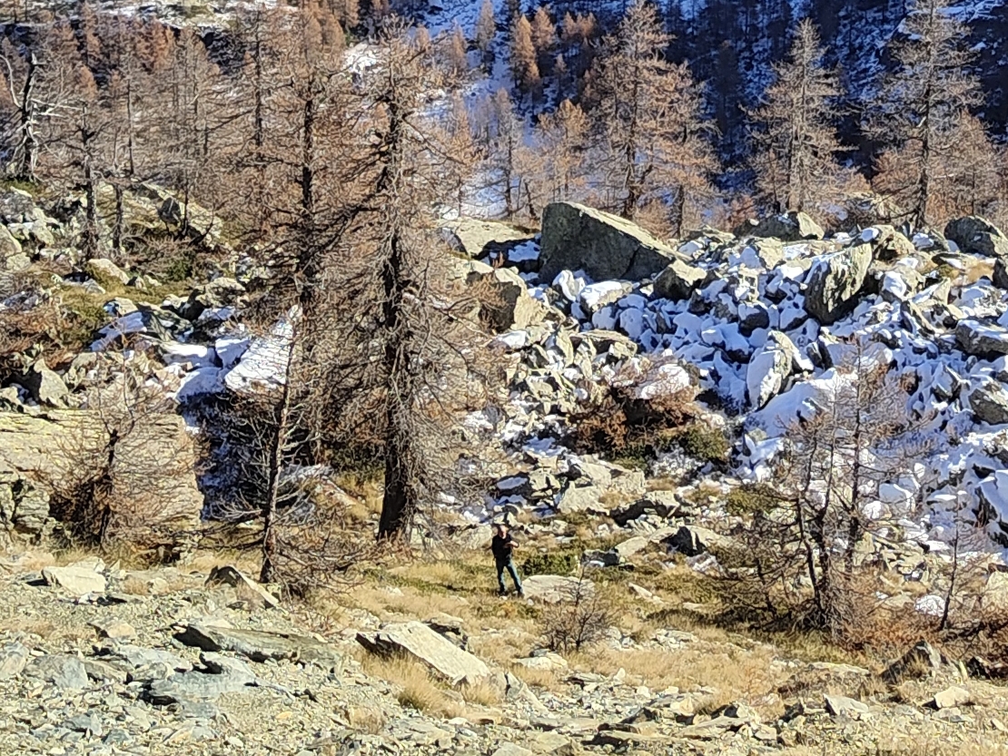 Bel posto peccato oramai quasi totalmente in ombra coperto dal monte Marzo. Col sennò di poi avessimo fatto l anello al contrario da Chardonnay passando dagli impianti in pieno sole forse al lago arrivavamo perché da quello che si vedeva dal colletto era tutto pulito. Però dico forse…cmq torneremo magari in estate.Incrociati 2 camosci uno a tutta velocità sembrava voler venirci addosso per poi schivarci fare inversione a u e tornare sulle vette ,momenti di panico.. 😅.Unica persona vista al ritorno un cacciatore che saliva.