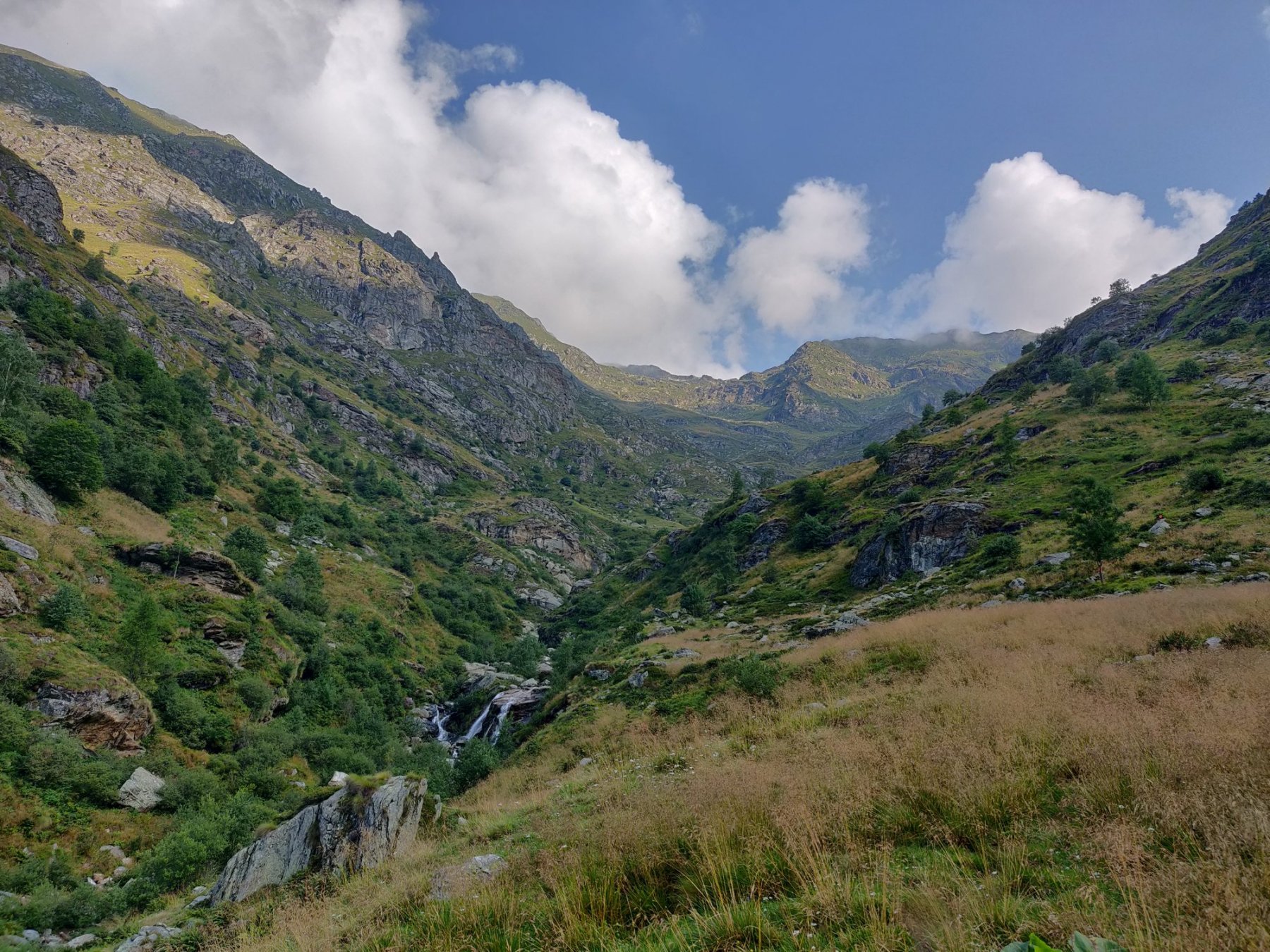 Passando a sx dell’alpe il sentiero raggiunge l’Alpe Cavanna 1638 m poi continua a salire sino all’alpe Vardasson 1882 m con alcuni interessanti stallaggi per pecore. Continuando a salire per rari ometti e bollini con qualche traccia di sentiero si attraversa il rio Verdassa portandosi alla sx (direzione salita) e si prosegue sino nei pressi dell’alpe Mionda (2100 m circa).