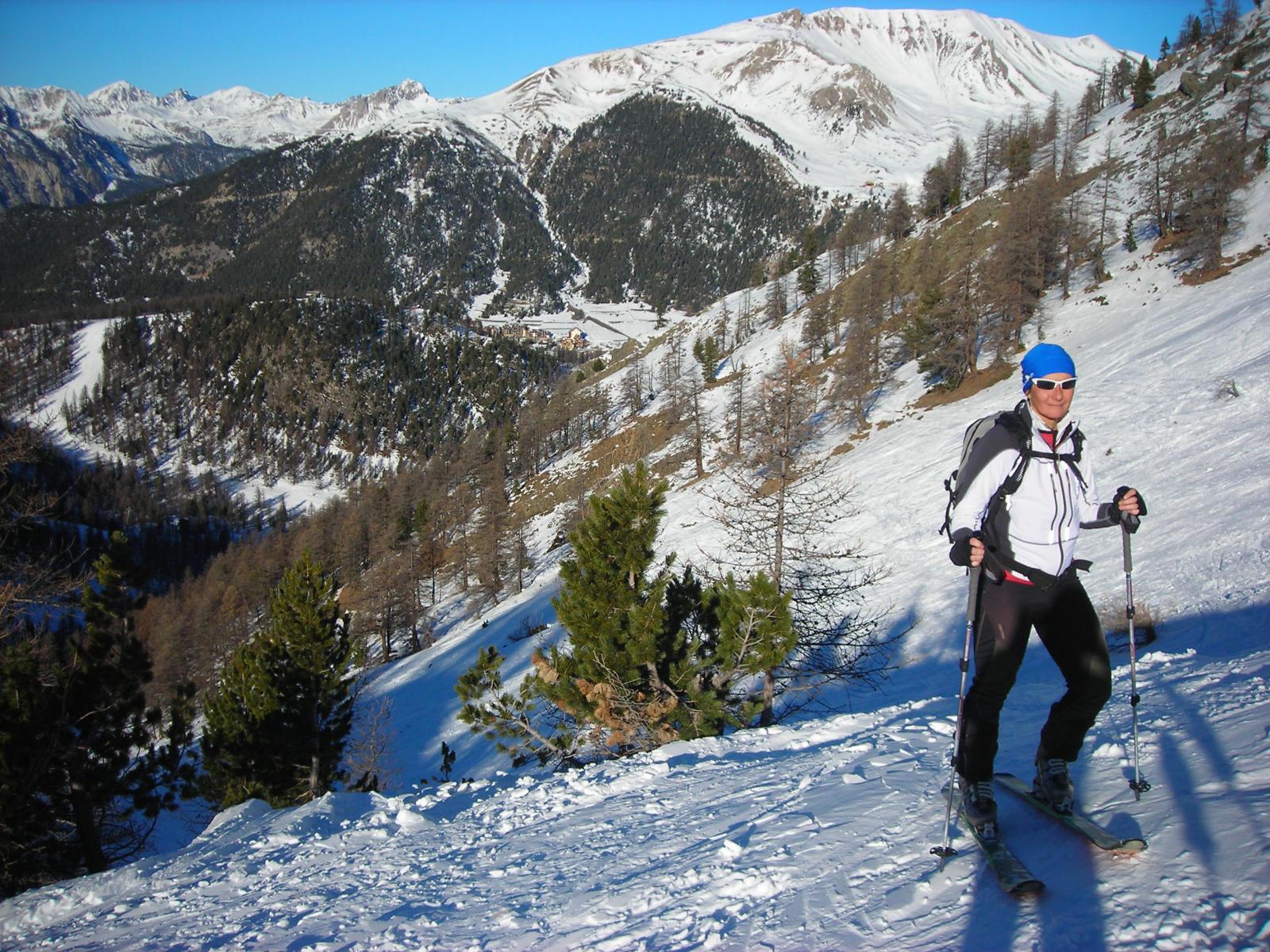 Saliti e scesi per la valle dei mandarini su neve semi-battuta dai numerosissimi passaggi,tutto sommato divertente!Nel bosco in basso prima di raggiungere la pista pietre affioranti,da fare attenzione!Una di queste mi ha “solettomizzato”uno sci!Sigh!