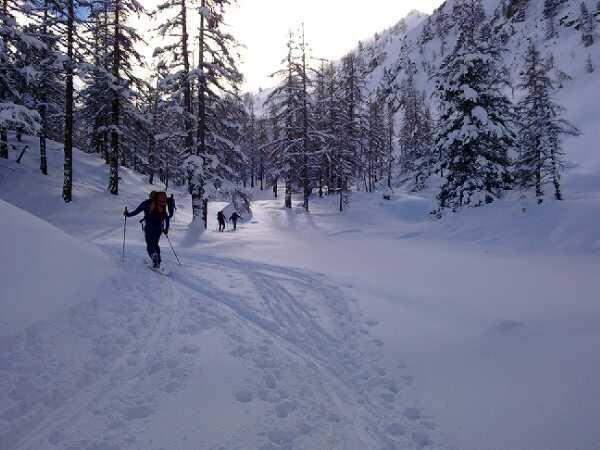 Ottima neve farinosa, facile e divertente soprattutto oltre i 2.200 metri quota. L’intero itinerario comunque è ben innevato. Le condizioni meteo migliorate ci hanno indotti a ripellare per fare quasi 1.200 metri di dislivello ma soprattutto altre belle curve in una neve che abbiamo sognato tutta l’estate. La compagnia di Alfonso, Enrico, Tiziano e Toni ha reso la prima uscita della stagione ancora più positiva.