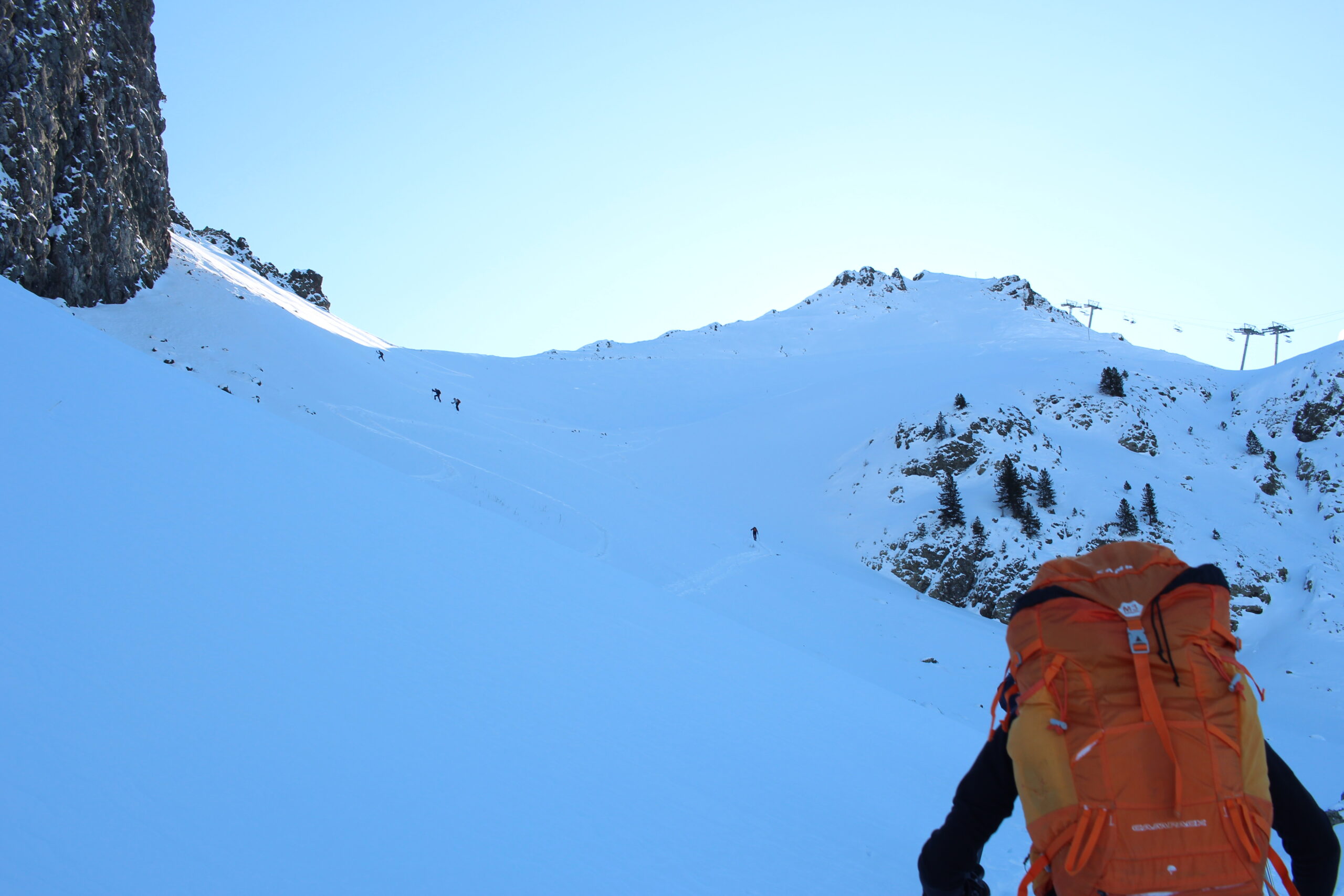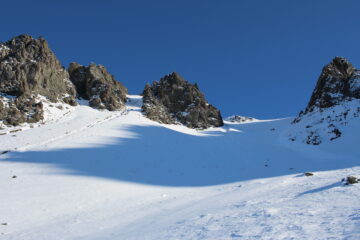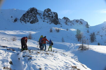 salita fantastica nel Vallone dei Mandarini, qualcuno dei nostri ha visto dei temerari scendere dal versante di salita scaricando neve. Due dei nostri, sempre temerari, sono saliti fino al Col Gimont dove c’era un bel gruppo di alpini in esercitazione. Discesa sulle piste.
