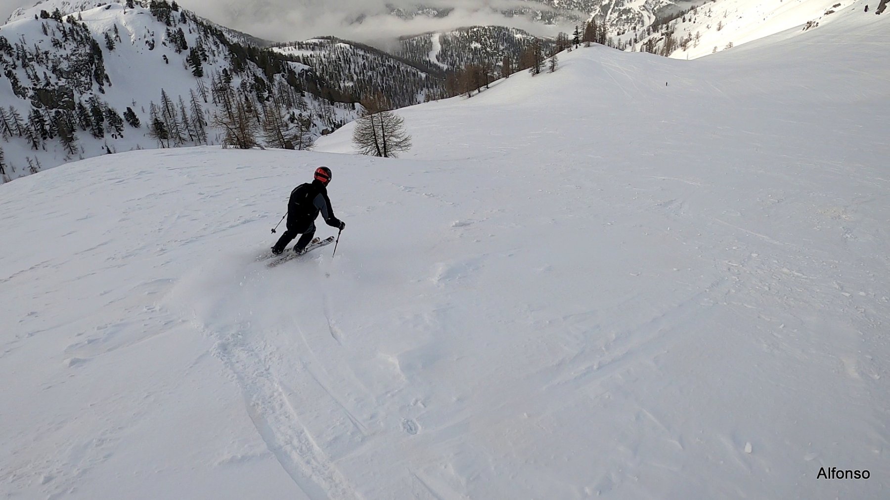 l’itinerario è quello che scende dal colletto Verde classico e conosciuto anche dagli scialpinisti.