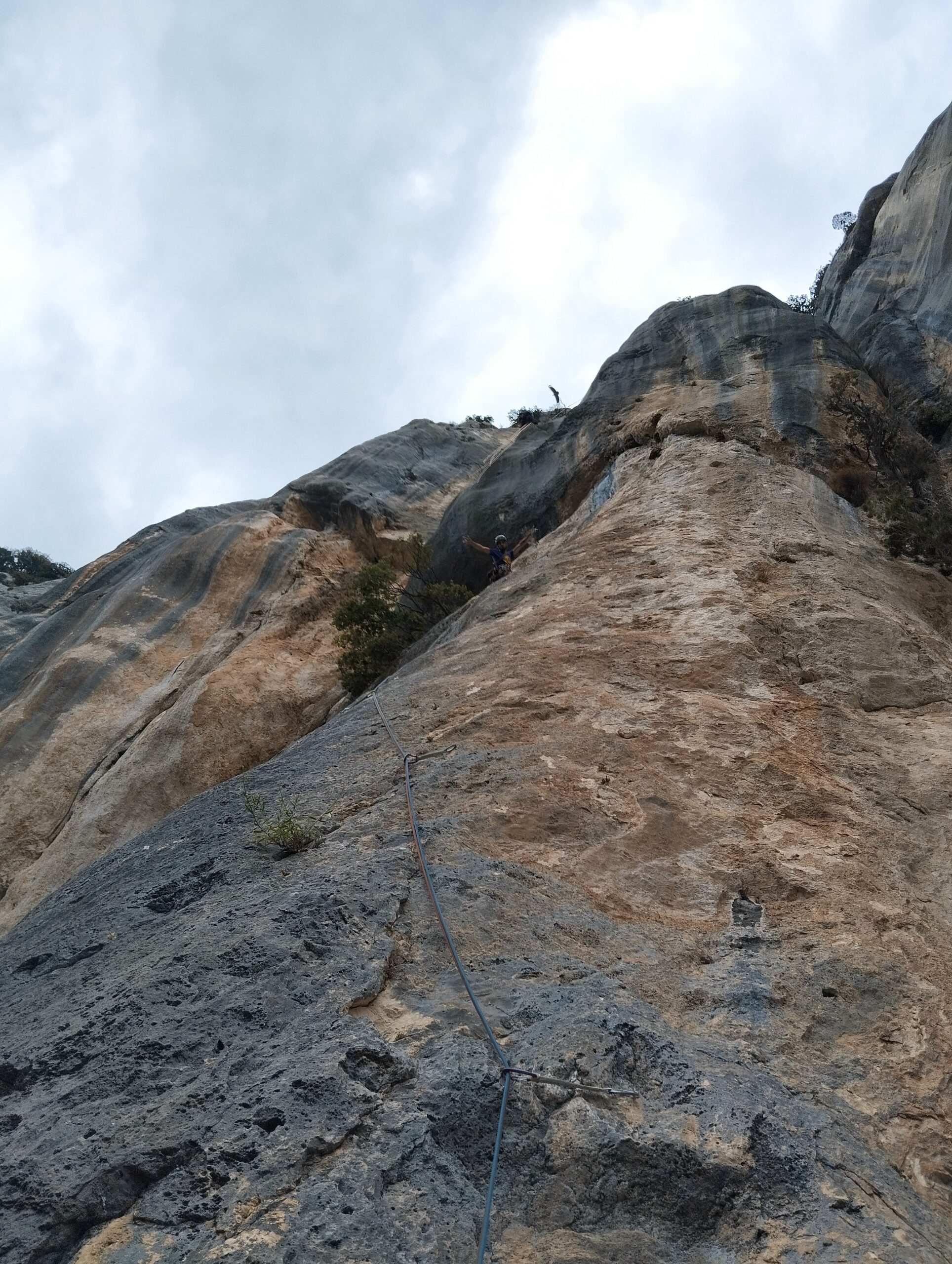 - L4. 7a+, 45m. le difficoltà sono nei primi 10 metri poi diventa 6a/b. (spoiler: per fare il passo obbligato bisogna rovesciare il bidito sinistro)