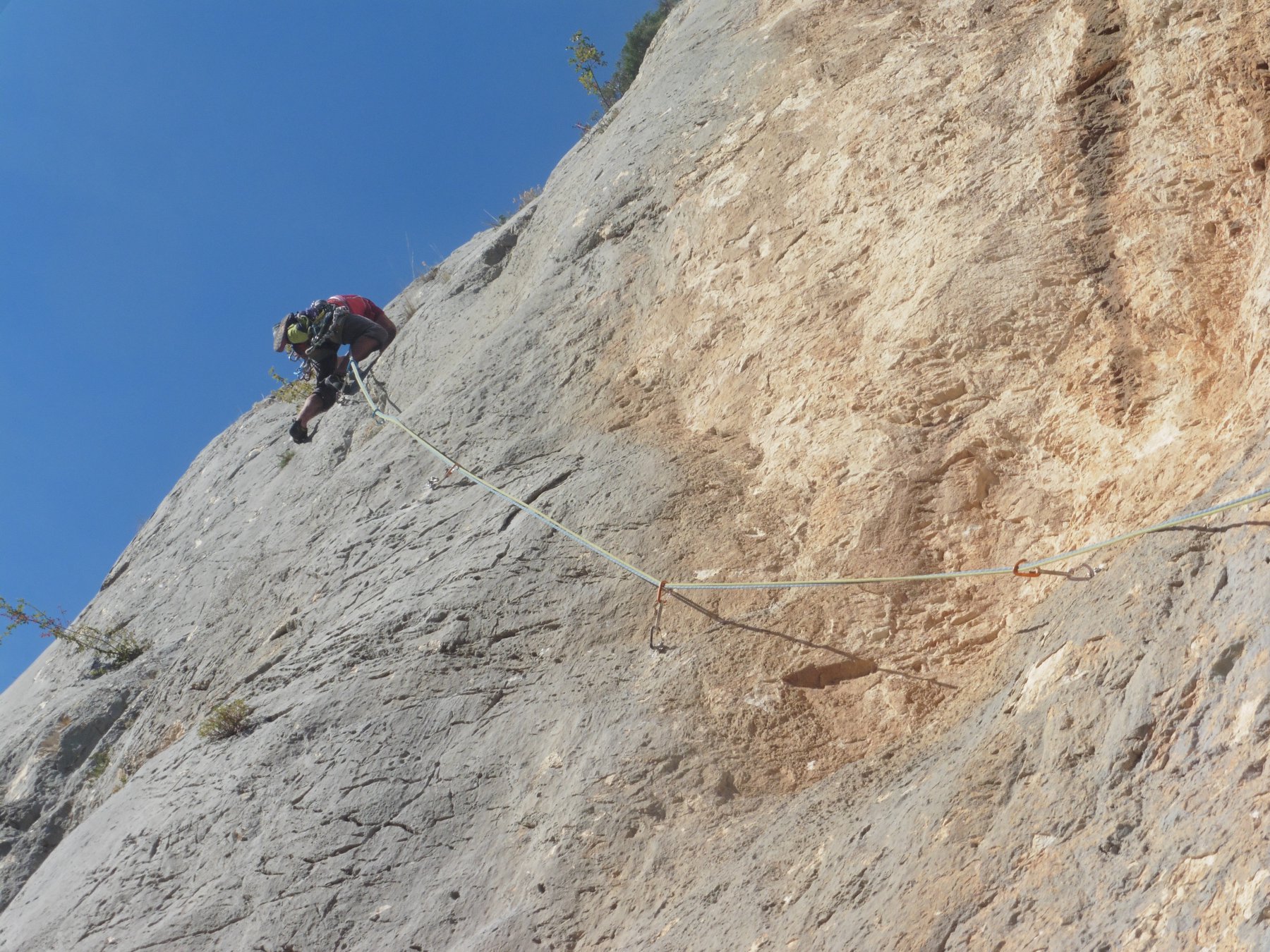 L5_6c_35m_prima 6a+ in diedro (fisico) poi traverso difficile a dx 2 metri di 6C , poi di nuovo 6a fino in sosta (roccia super!)