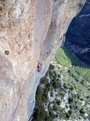 Stupenda linea! Protezioni più ravvicinate nei primi tiri, mentre da metà L4 in poi diventano più “verdoniane”… Roccia croccante sui primi tiri, poi migliora decisamente. Pare incredibile che una linea classica dei fratelli Remy, degli anni 80, non sia ancora unta!