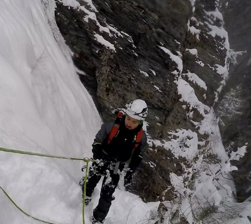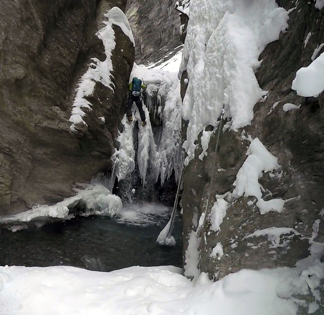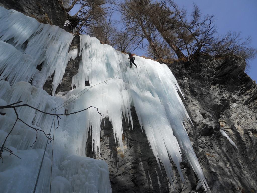 – Primo salto 80°/85° 30 mt fino alla base della colonna.