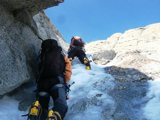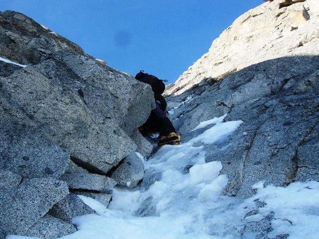 Veramente una gran bella salita condizioni ancora buone ma magre nel colatoio finale,il ghiaccio presente è comunque buono…ci si protegge bene comunque con Friends e con i vari chiodi presenti…ora chiodi da ghiaccio praticamente inutili…
