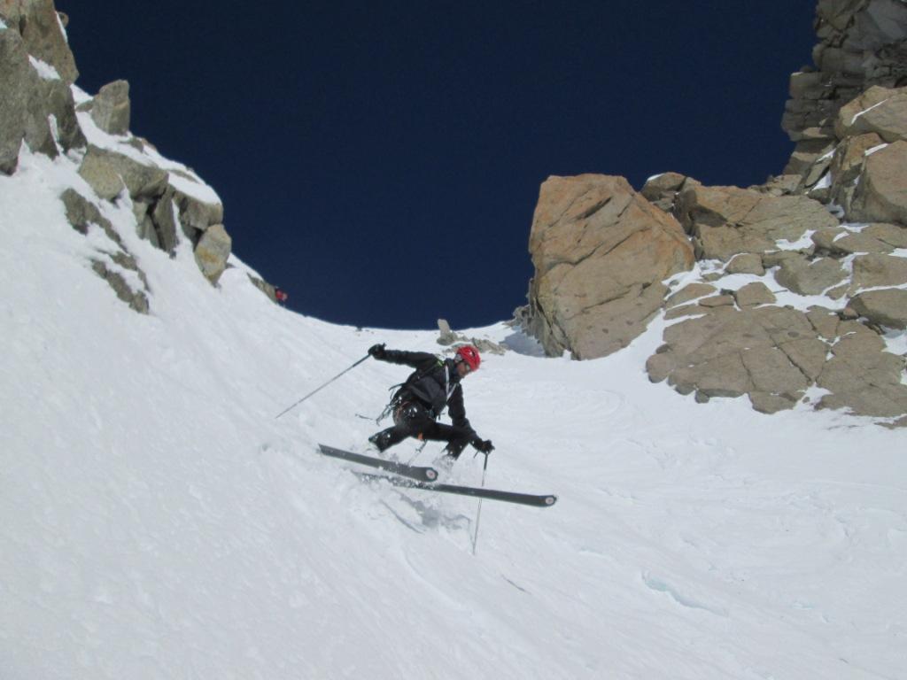 Si attraversa poi fina al canale secondario che stretto e ripido con rocce affioranti conduce al couloir principale. Risalirlo poi sino al colle e poi per cresta in cima.