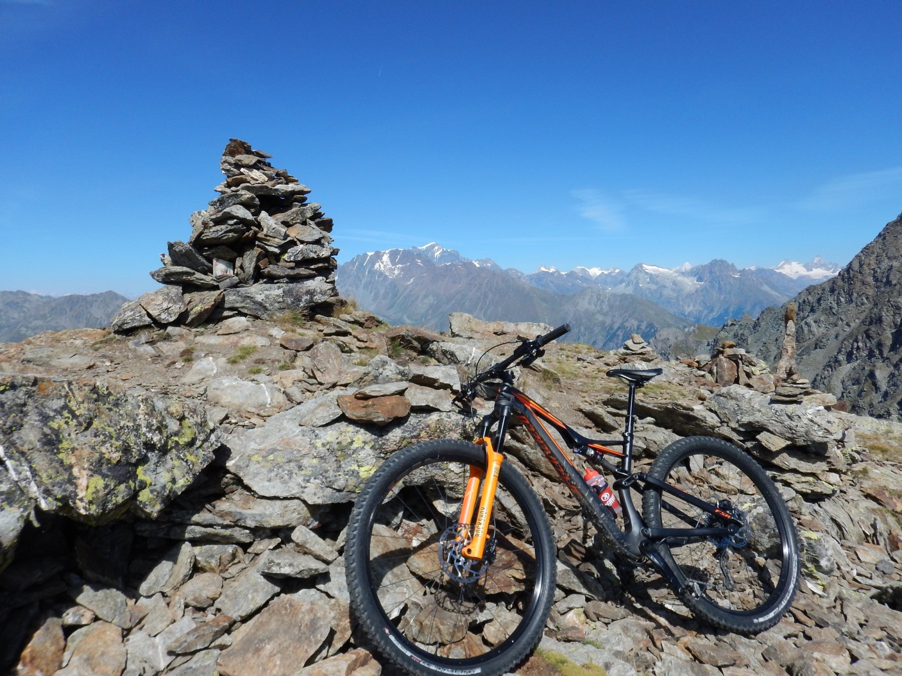 Da Aosta si sale per asfalto fino ad Arpuilles e poi a Plan d’Avie. Da li si prende il sentiero che affianca il Ru Neuf (sentiero 1). Si percorre totalmente fino a Etroubles. Ad Etroubles si percorre il percorso vita fino ad un campeggio. Subito dopo il campeggio parte sulla sinistra la sterrata che entra nel vallone di Flassin. La si percorre interamente fino alla Tza di Flassin a 2260 mt. Da li parte il sentiero segnalato TMF che porta al colle Vertosan (alcuni tratti ciclabili, poi a spinta). Dal colle in breve si arriva in cima al Mont Vertosan. Dalla cima si scende verso il col fenetre. Dal colle parte un sentiero che porta al rifugio Fallere. Dal rifugio ci sono numerose varianti per scendere ad Aosta. Io ho percorso il sentiero di discesa fino a Vetan, e dopo la chiesetta di Vetan ho preso il sentiero 12A che scende a Saint Pierre.