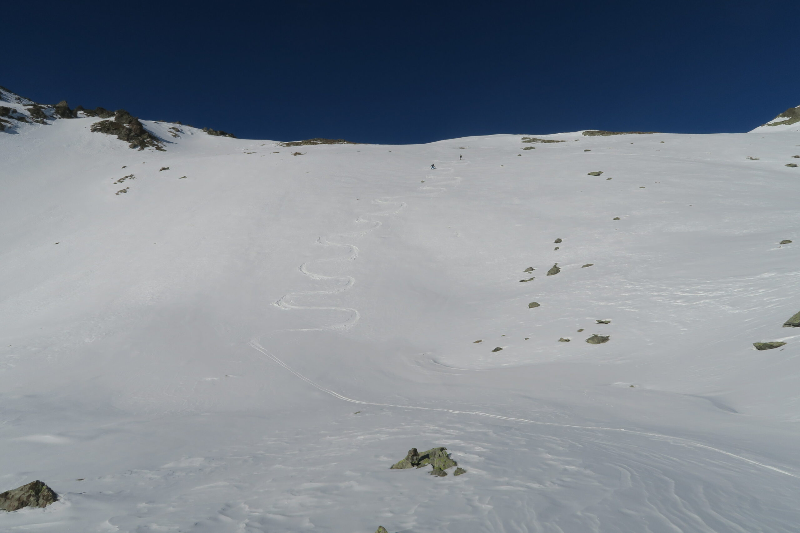 Neve tutto sommato discreta, ormai trasformata sui pendii ripidi esposti al sole