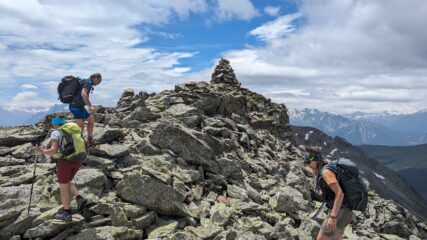Salita per me inedita da questo versante e in versione estiva! il meteo si è guastato ben presto facendoci scappare dalla vetta; siamo saliti dalla variante a sin (tracce e ometti) in una valletta meno frequentata fino ad un laghetto dove ci si ricongiunge con l’itinerario classico TMF per il Col Fenetre che abbiamo invece percorso al ritorno e ben segnalato; discesa veloce al Rif. Fallere dove abbiamo pernottato.