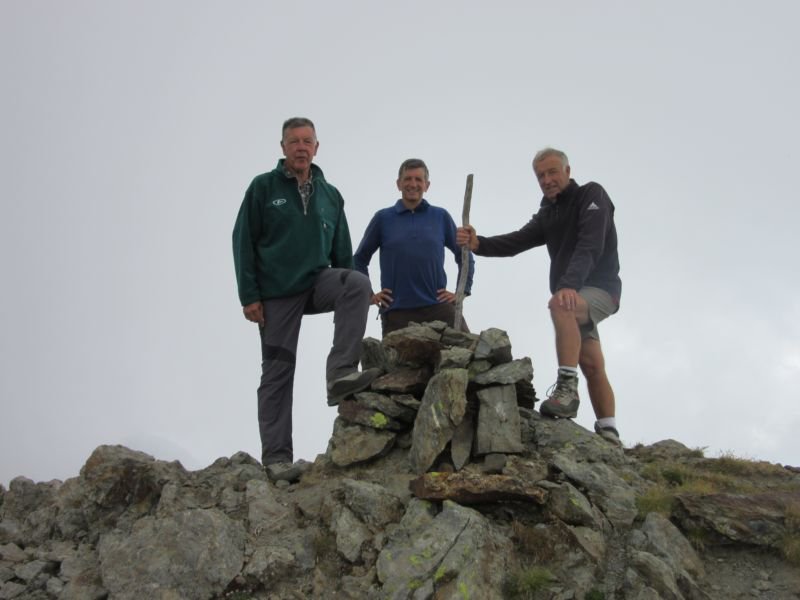 Saliti al Rifugio Fallere e proseguito per il Monte Rosso di Vertosan. Il sentiero di salita non c’è, bisogna arrangiarsi cercando la miglior via. Noi abbiamo optato per la salita lungo i crinali prativi fino in cresta dove finalmente si trovano degli ometti. Purtroppo la giornata non era un granchè e il panorama dalla vetta è stato molto limitato. Riscesi al rifugio (sempre molto accogliente) e all’auto ammirando le nuove sculture di Vierin. Gita in compagnia di Sergio, Pier Albino, Giorgio e Gianni che ci ha aspettato al Rifugio.