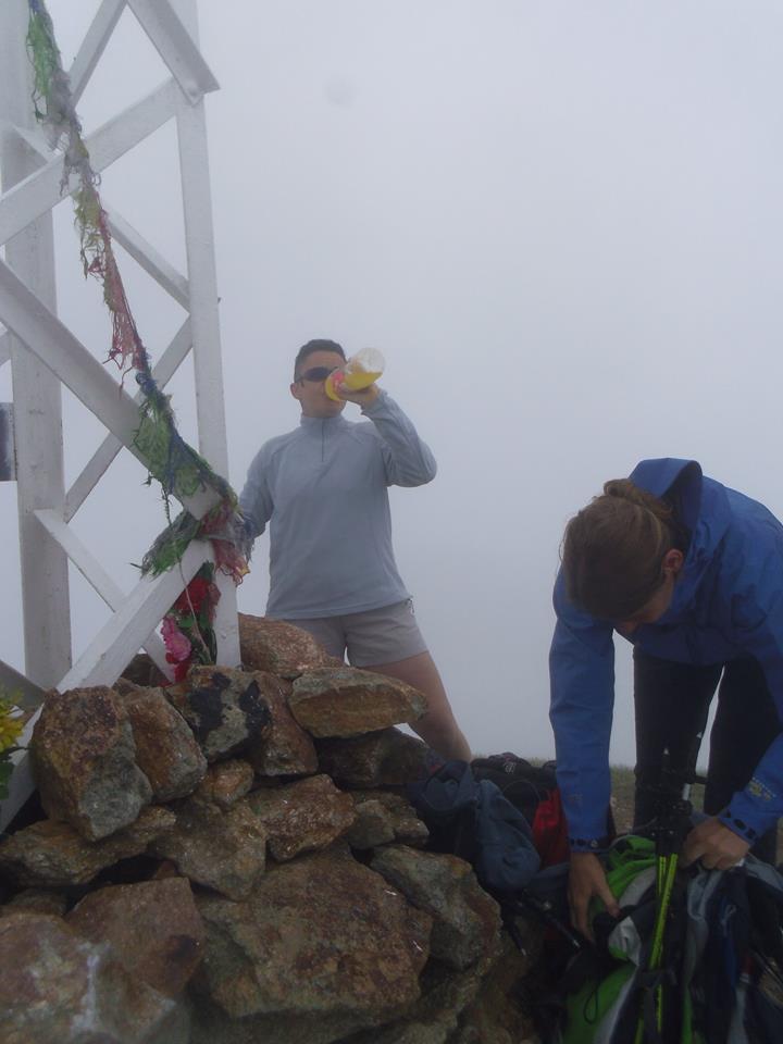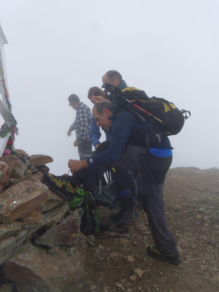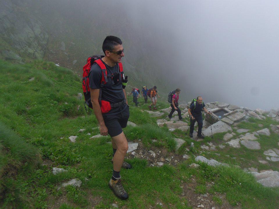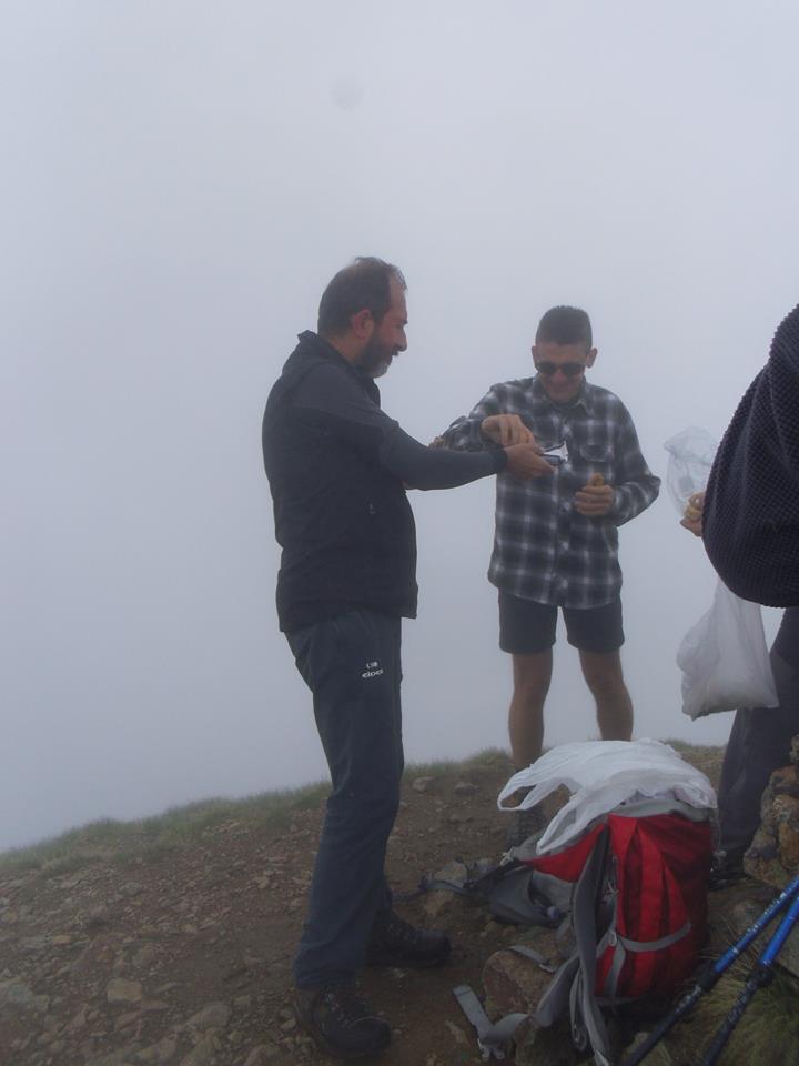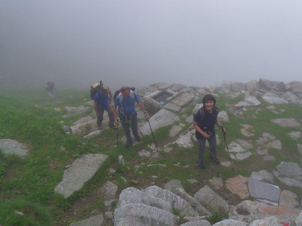 In cima alle 12.30 tra le nebbie col socio, raggiunti al Rif. Fornetto da 8 ugettini, percorso ben segnato.