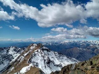 Senza parole la vista sull’arco alpino, per citarne qualcuno, in senso orario, Monviso, Uia di Mondrone, la Ciamarella e L’albaron, le Levanne, Ciarforon, Gran Paradiso, Grivola, Torre di Lavina e il Cervino.
