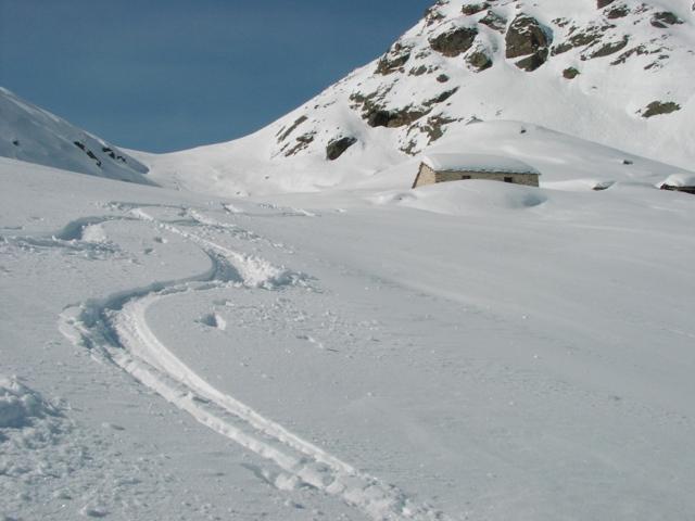 Di qui ci si abbassa leggermente sotto una balza rocciosa e si sale per il ripido canale fino al Rifugio Fornetto (2140 m.).