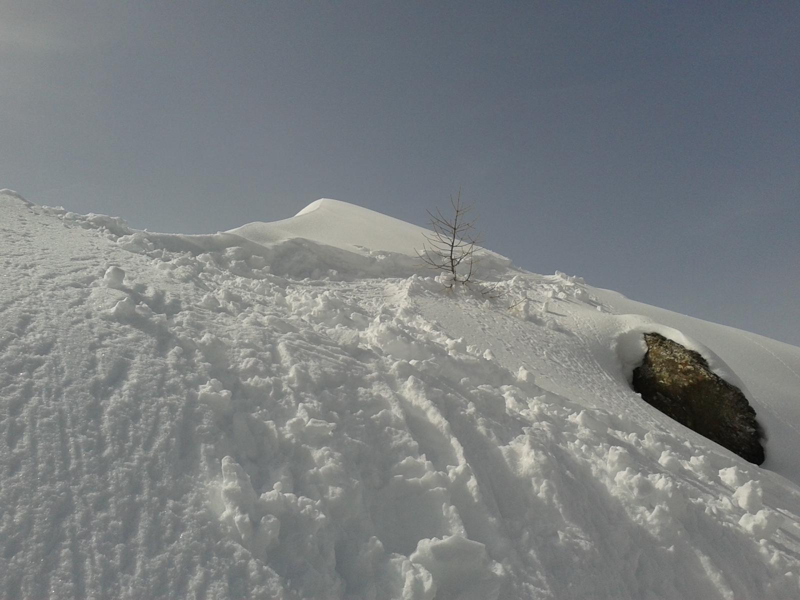 Salve.Partiti con l’idea di sondare ed esplorare bene il posto per fare i canali della Gran Guglia.Visto il caldo,l’ora un po’ tarda,e,soprattutto non aver imboccato la strada esatta,andiamo su questa cima con un notevole panorama.Caldissimo in salita e discesa.Zero stelle per la qualità della neve,insciabile da cima a fondo.La peggior neve dell’anno,e spero l’ultima…