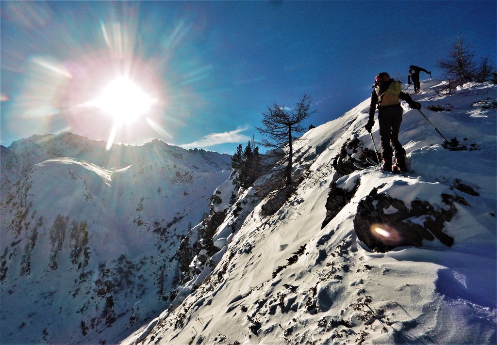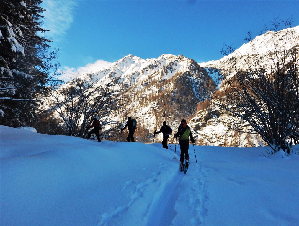 Con Giorgio, Silvia, Gianluca e Gianfranco. Giornata limpida, fredda al mattino ma con refoli miti al rientro al Bout du Col.