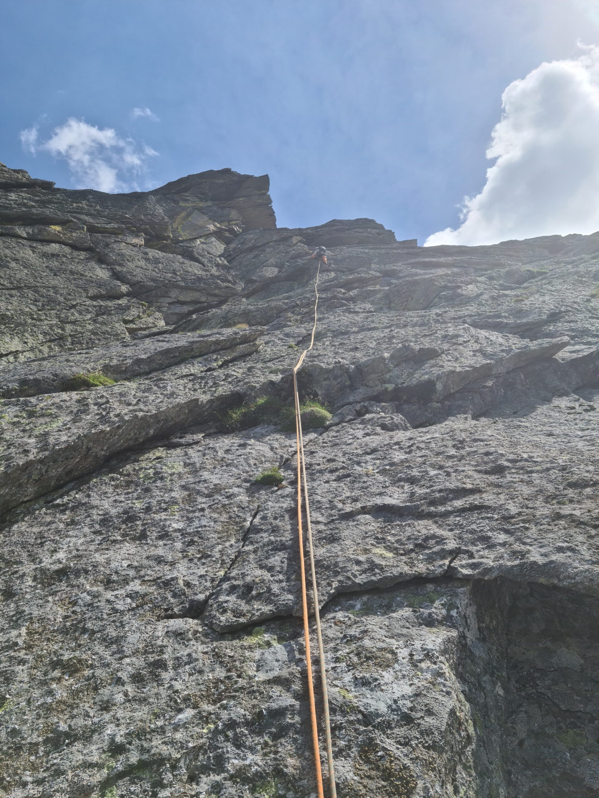 Materiale: corde da 60 m, 6 rinvii, una serie completa di friends dai micro al #4.