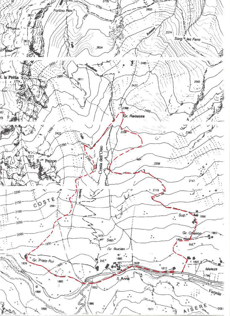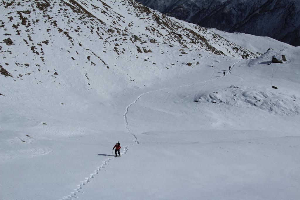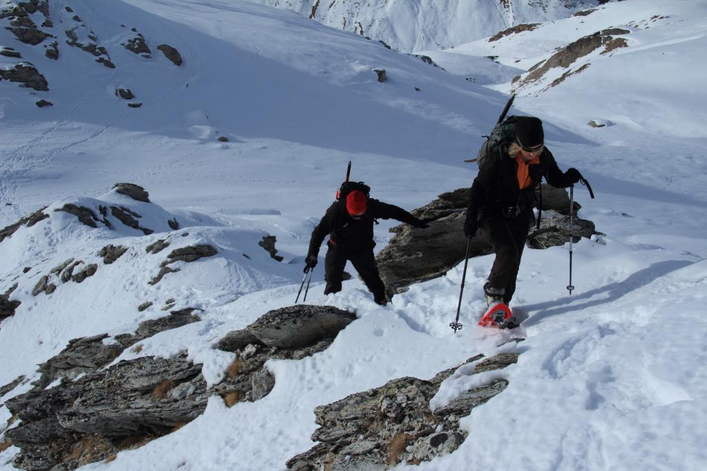 Raggiuntele a monte di queste si individua un bel sentiero che con ampi tornanti risale il costone, piegando progressivamente verso sinistra per immettersi nel vallone di Reisassa. E’ anche possibile risalire direttamente per prati quando la neve non è presente.