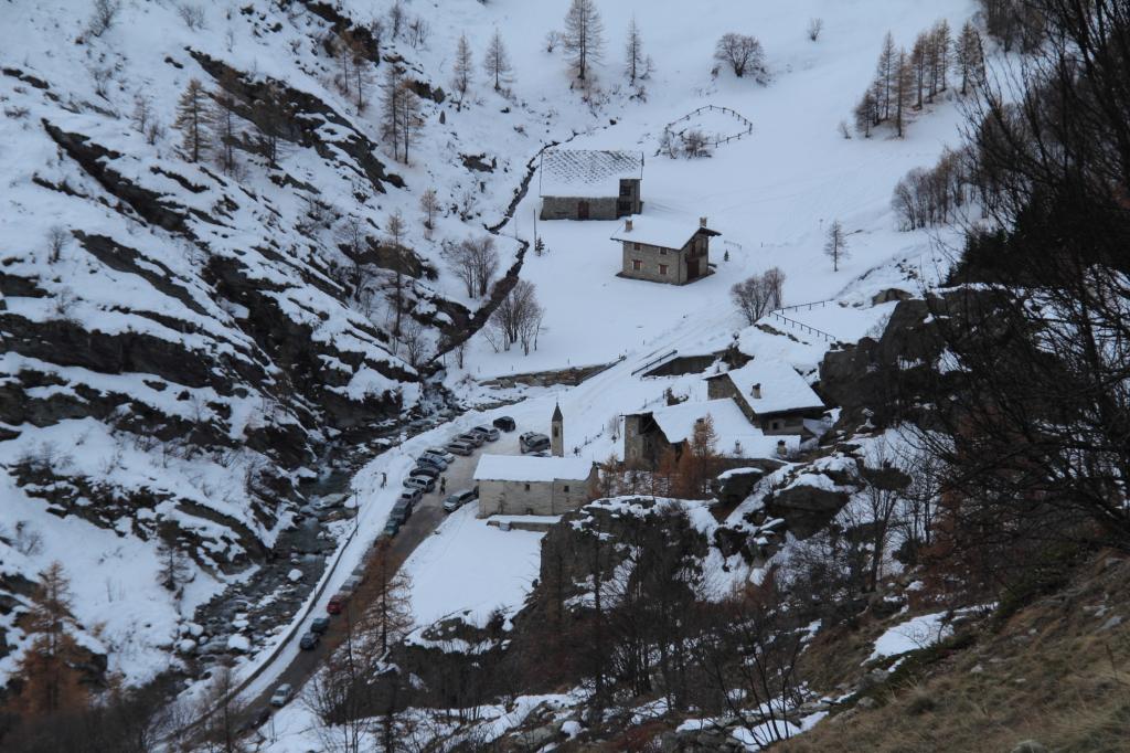 Dal parcheggio antistante il Rifugio Melezè, si risale per prati (spesso spogli di neve anche d’inverno) raggiungendo sulla destra un piccolo gruppo di baite.