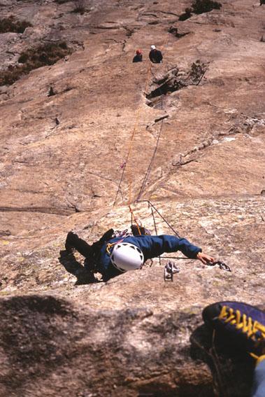 Dopo la Cima delle Grange abbiamo fatto gli ultimi cinque tiri di questa bella via raggiungendo l’attacco del sesto tiro grazie alla cengia che spezza in due la salita completa. Giornata completa ed appagante