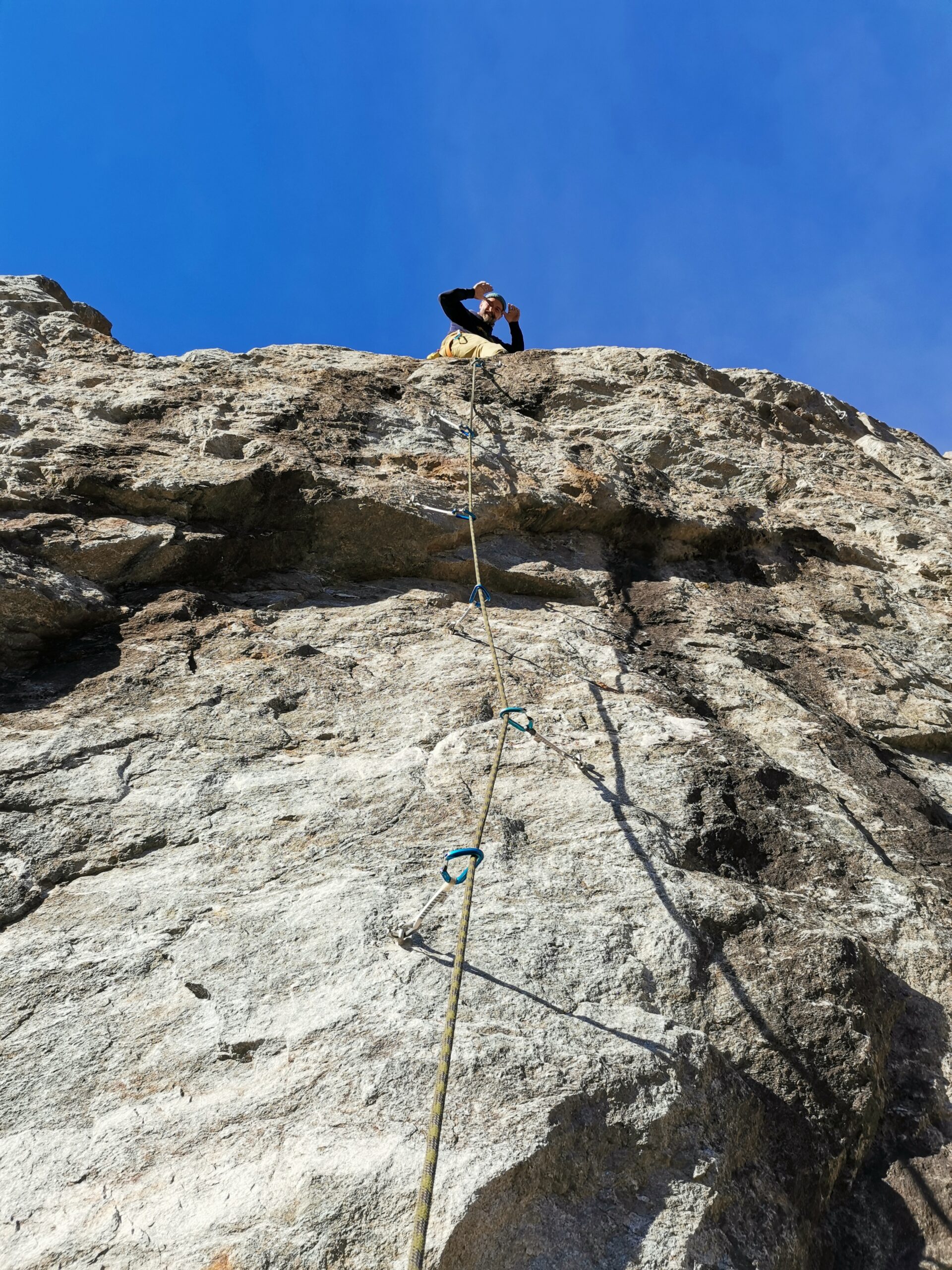La roccia in alcuni punti è ancora un po’ terrosa. Chiodatura ottima! Fittoni resinati mungibili sempre. Almeno non si lascia materiale in giro…