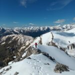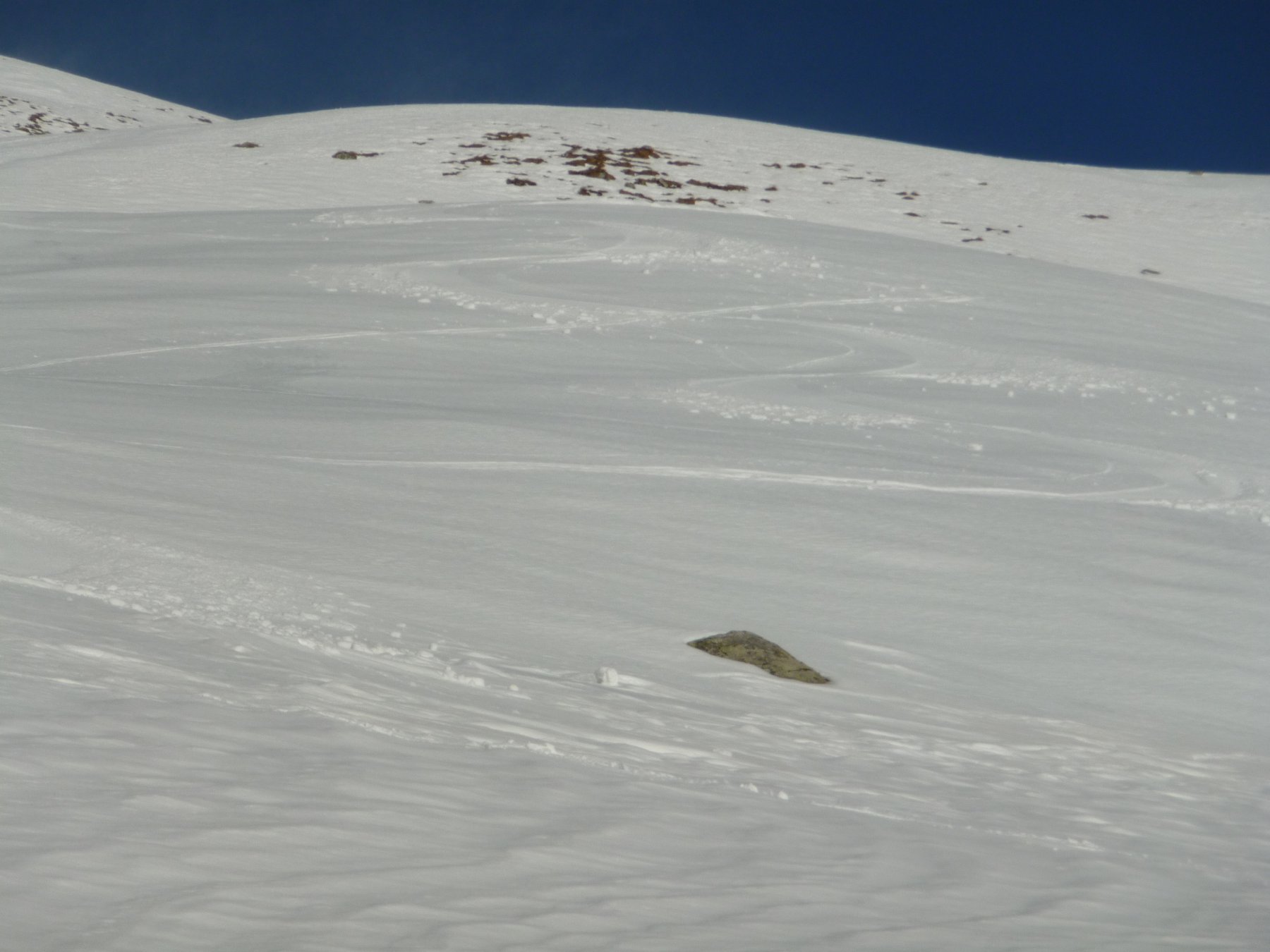 La discesa per la stessa via può offrire ottime soluzioni per la pendenza e, se l’innevamento è valido, anche soddisfazioni di “cernier” a ripetizione.