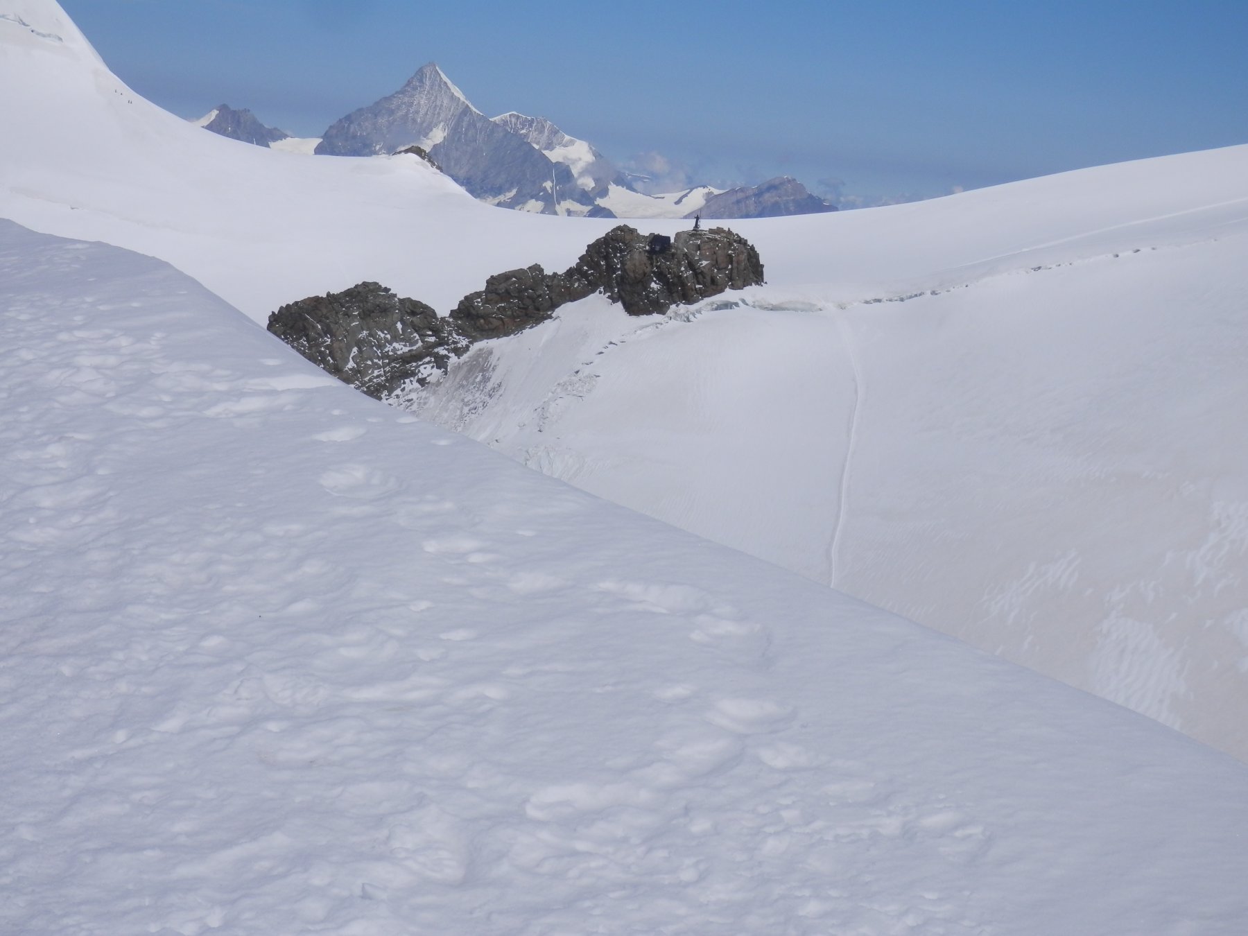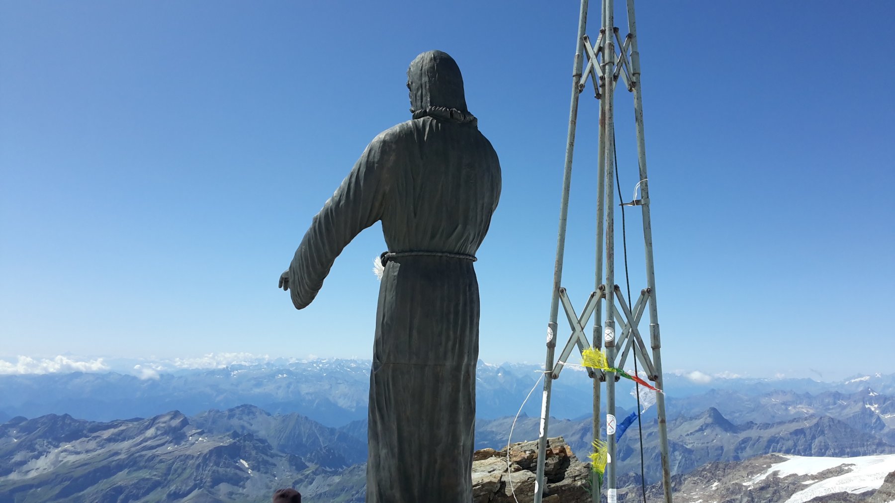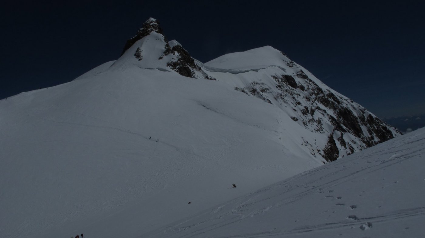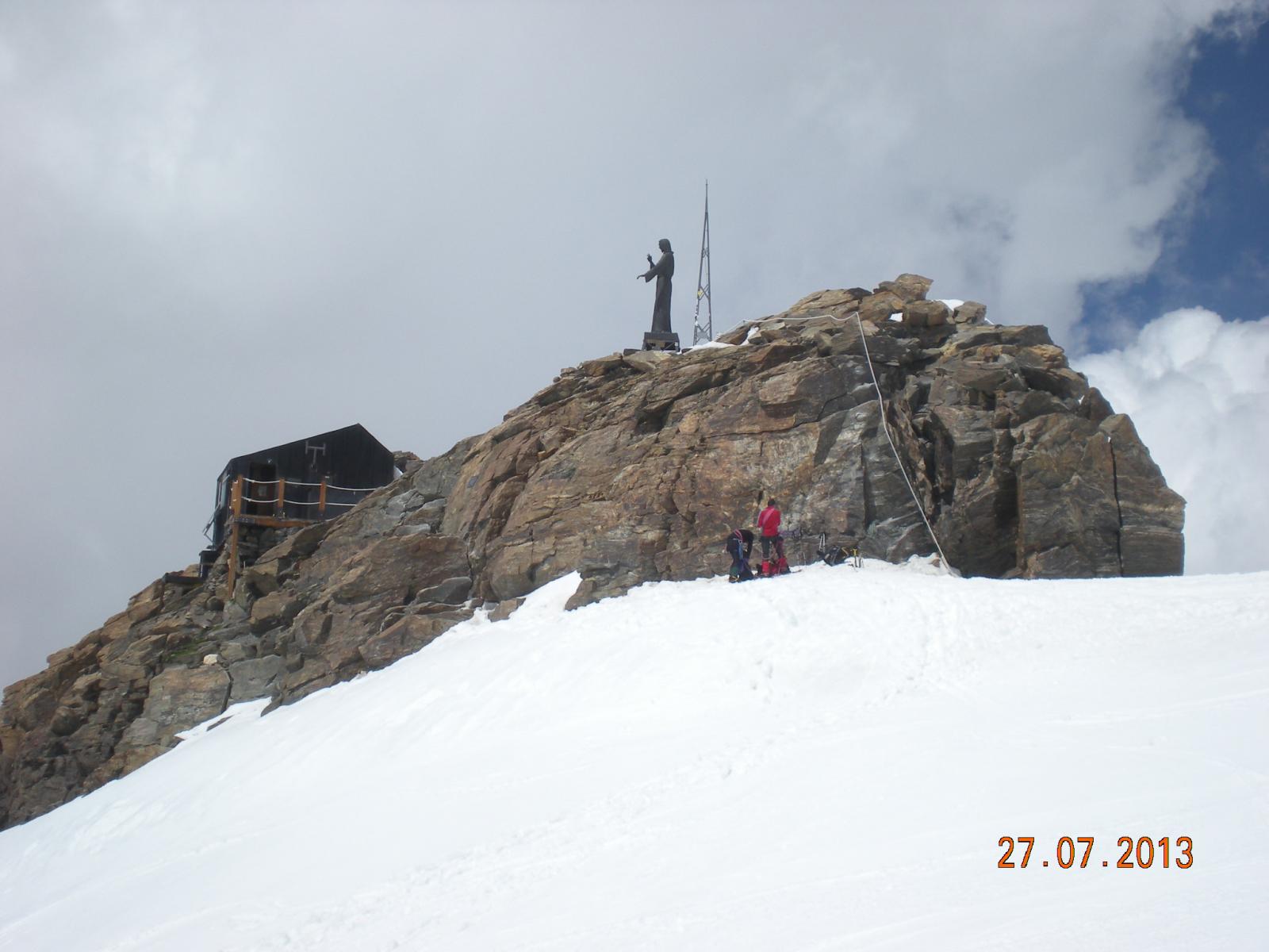 Per raggiungere il Balmenhorn 4185 m ,dopo aver ripercorso a ritroso la calotta sommitale sino al punto di accesso in salita si scende per il versante salito puntando in linea retta il colle sottostante che si raggiunge in pochi minuti, di qui si prosegue risalendo la parta opposta del colle percorrendo il diagonale a sx sino a raggiungere la base rocciosa del Balmenhorn. Una corda attrezzata e scalini artificiali permettono il facile raggiungimento la statua del Cristo delle Vette e il sottostante bivacco Giordano.