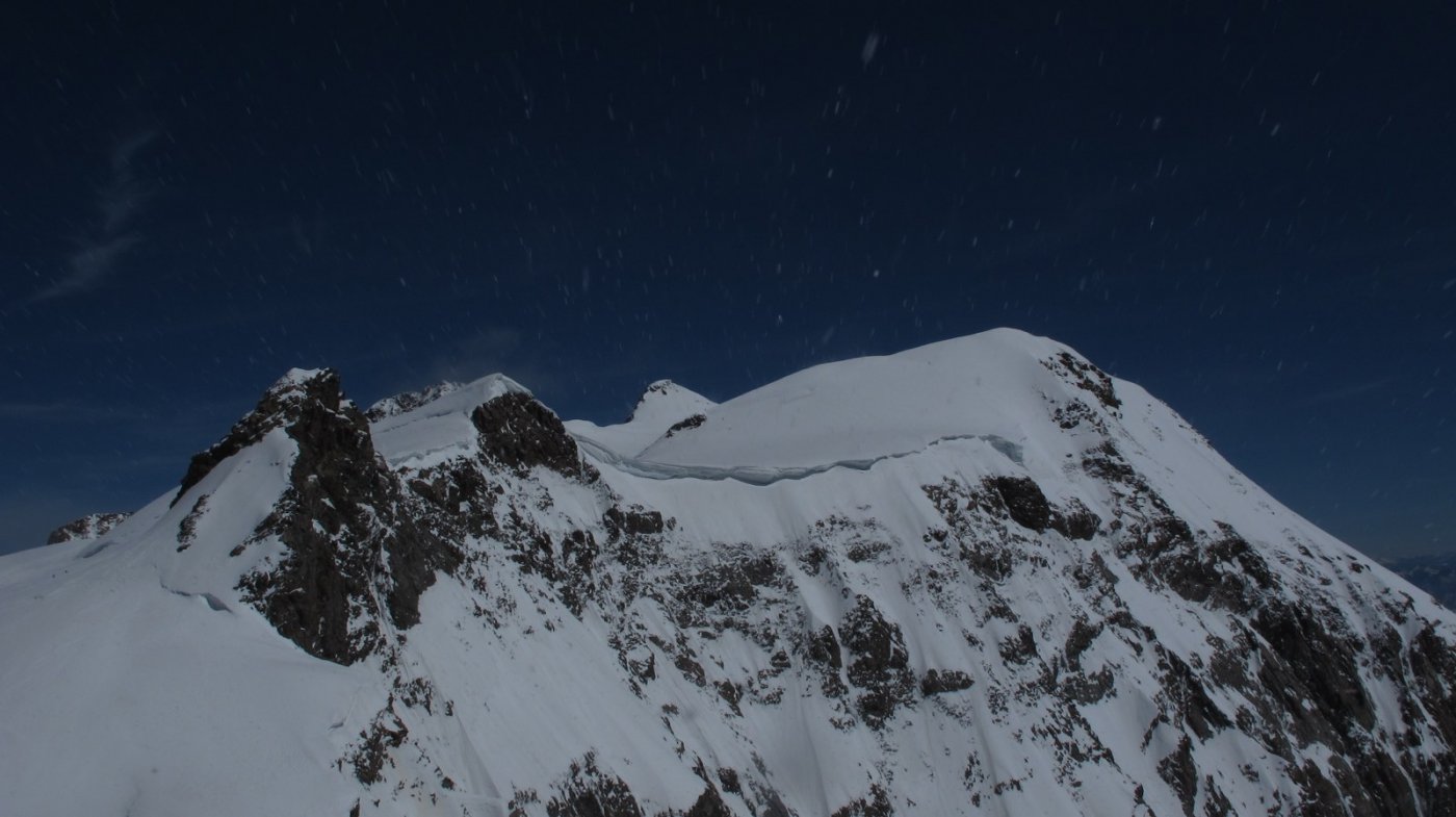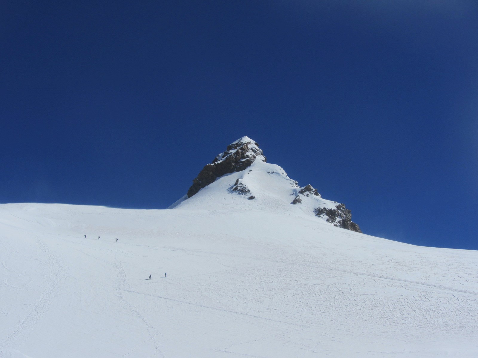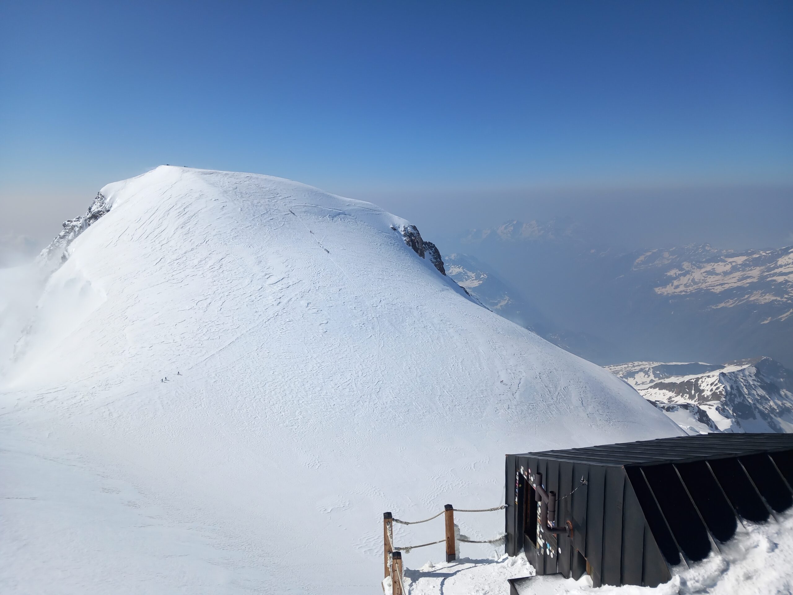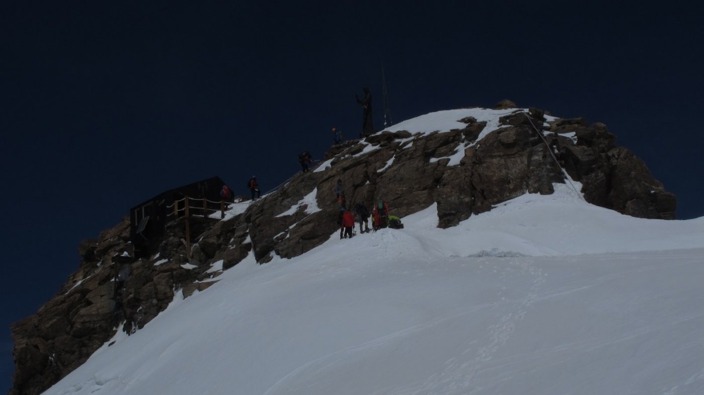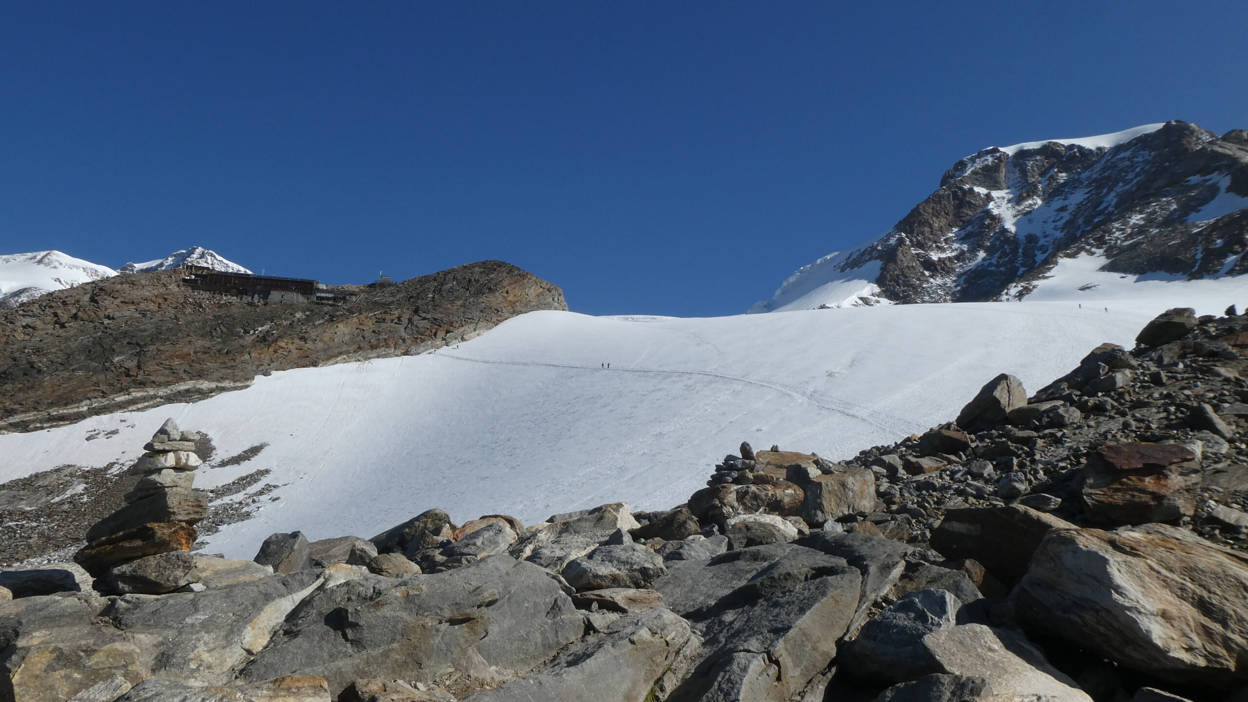 Per raggiungere il Balmenhorn 4185 m ,dopo aver ripercorso a ritroso la calotta sommitale sino al punto di accesso in salita si scende per il versante salito puntando in linea retta il colle sottostante che si raggiunge in pochi minuti, di qui si prosegue risalendo la parta opposta del colle percorrendo il diagonale a sx sino a raggiungere la base rocciosa del Balmenhorn. Una corda attrezzata e scalini artificiali permettono il facile raggiungimento la statua del Cristo delle Vette e il sottostante bivacco Giordano.