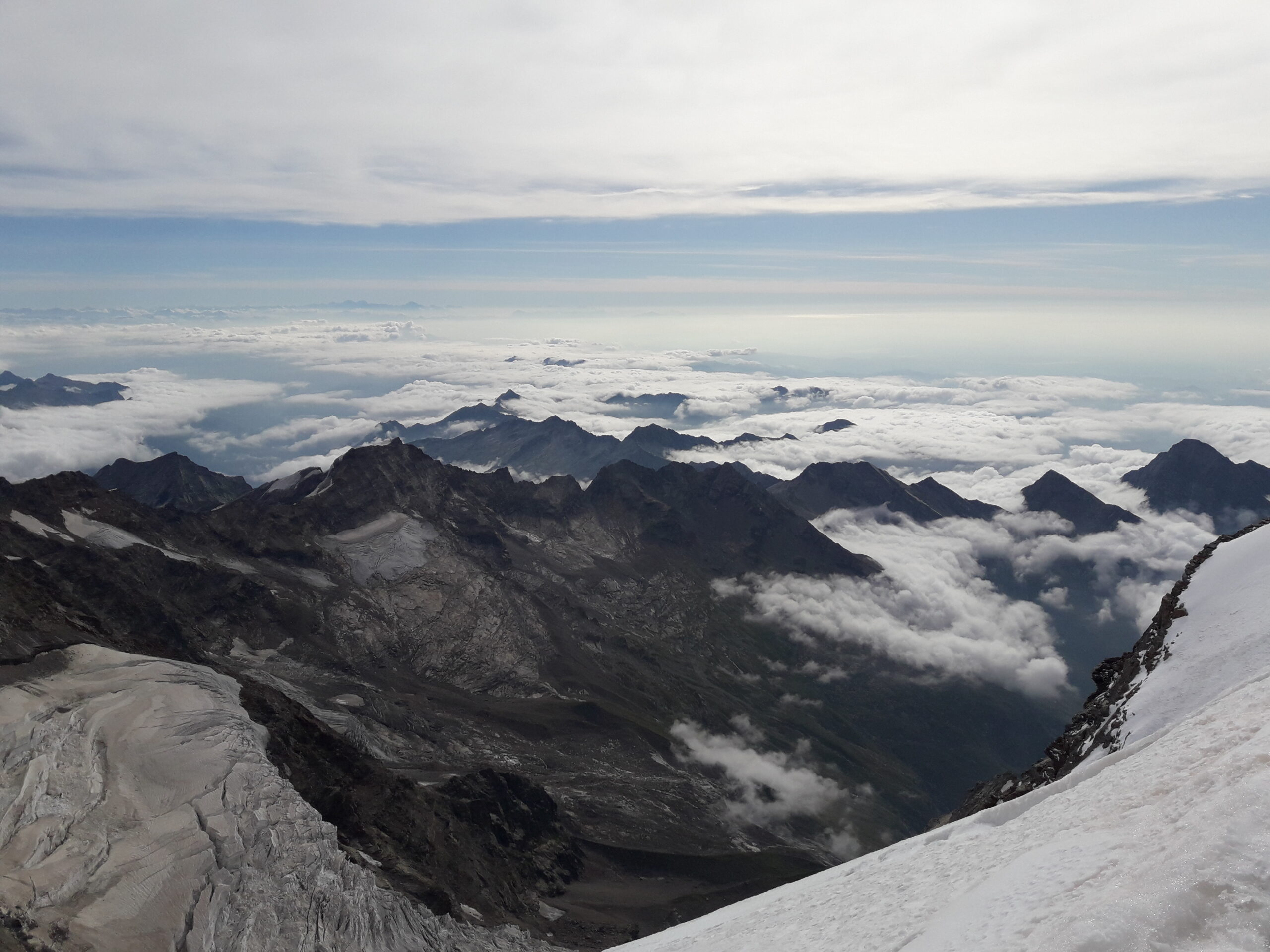 Arrivato alla Gnifetti mi è venuto lo sconforto nel vedere il ghiacciaio così, ecco perché solo 3 stelle. Un anno dopo è irriconoscibile. Poca gente in giro rispetto al solito, sicuramente per via delle condizioni. Senza la vagabonda, con Mattia e i suoi due giovanissimi e fortissimi figli Tommaso e Michele alla loro prima in quota, affrontata senza battere ciglio…grandissimi.