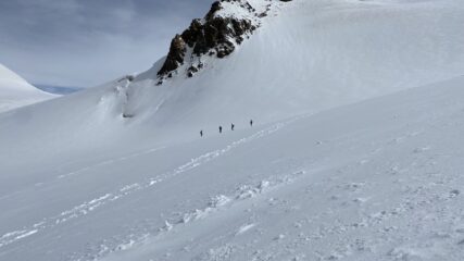Partiti con previsione incerta per andare alla capanna Margherita al colle delLys copertura totale e nevischio …dopo mezz’ora di attesa inutile, siamo ridiscesi ma fortunatamente un’apertura di un’ora e mezza di tempo bellissimo ci ha fatto salire questa bellissima montagna. Un sacco di neve in relazione alla stagione. Con Francesca alla sua prima uscita in alta montagna.