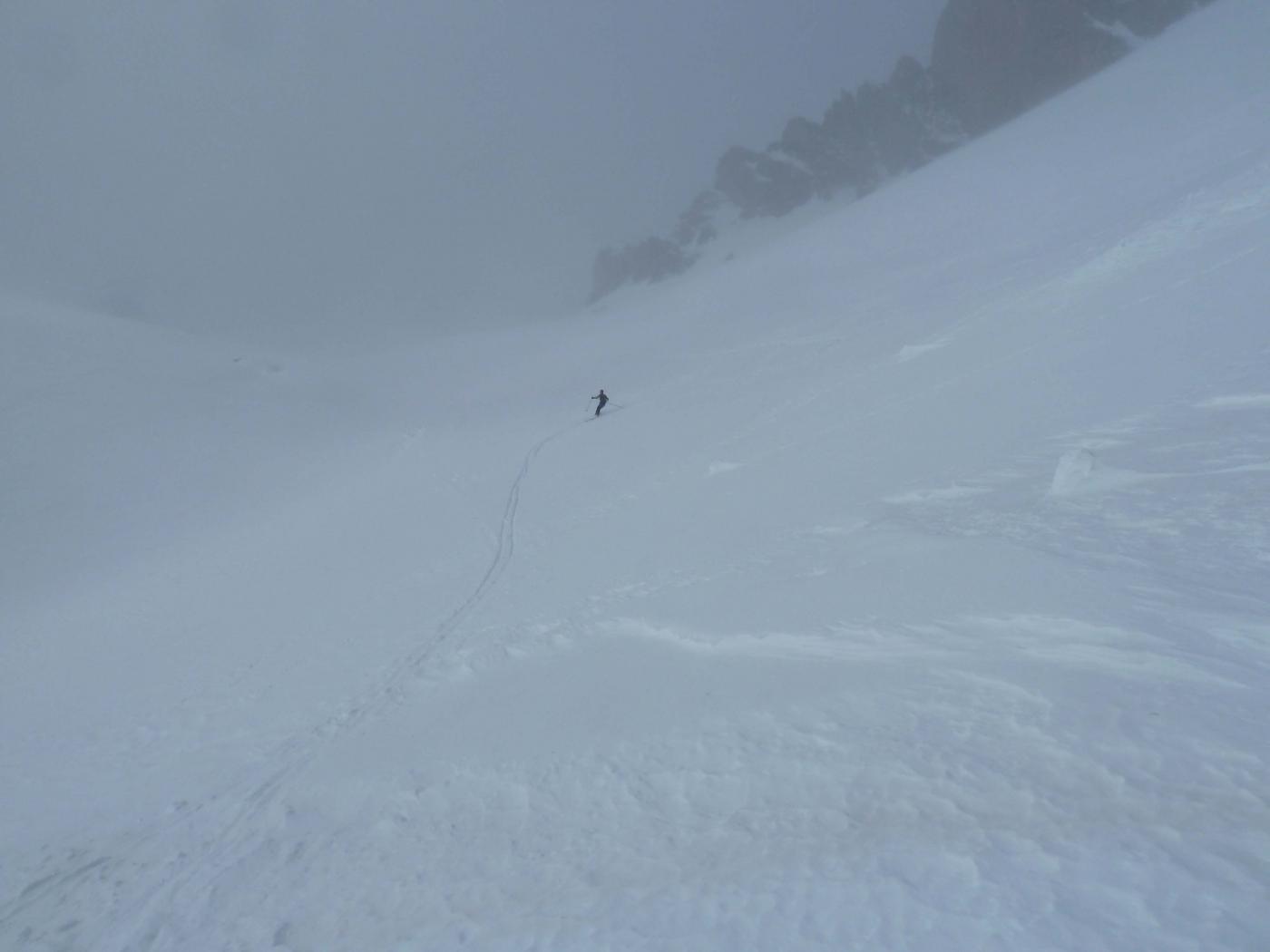 Partiti stamani con poche ideee e strada facendo decidiamo di ritornare nel Vallonasso di Sautron per tentare la salita al M.Viraysse. Giunti sotto il colle del Sautron un forte vento gelido frontale ci obbliga a cambiare rapidamente itinerario. Puntiamo i pendii a destra verso il colle del Passetto m.2681 per dare una meta alla gita e soprattutto perchè il percorso sembrava più riparato dalle raffiche di vento. Giunti in cima rapido dietro-front sotto una bella tormenta ma la discesa fortunatamente è stata sopra le nostre aspettative, addirittura la neve ci è perfino sembrata migliorata rispetto a ieri. In basso ancora gran polvere con qualche grattatina alle solette sul tratto poco sopra la stradina.