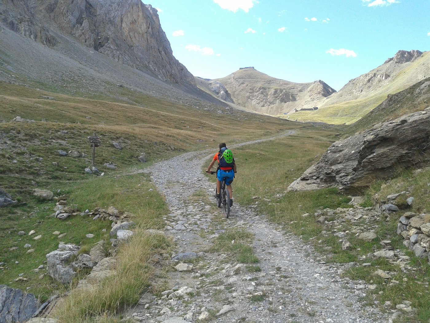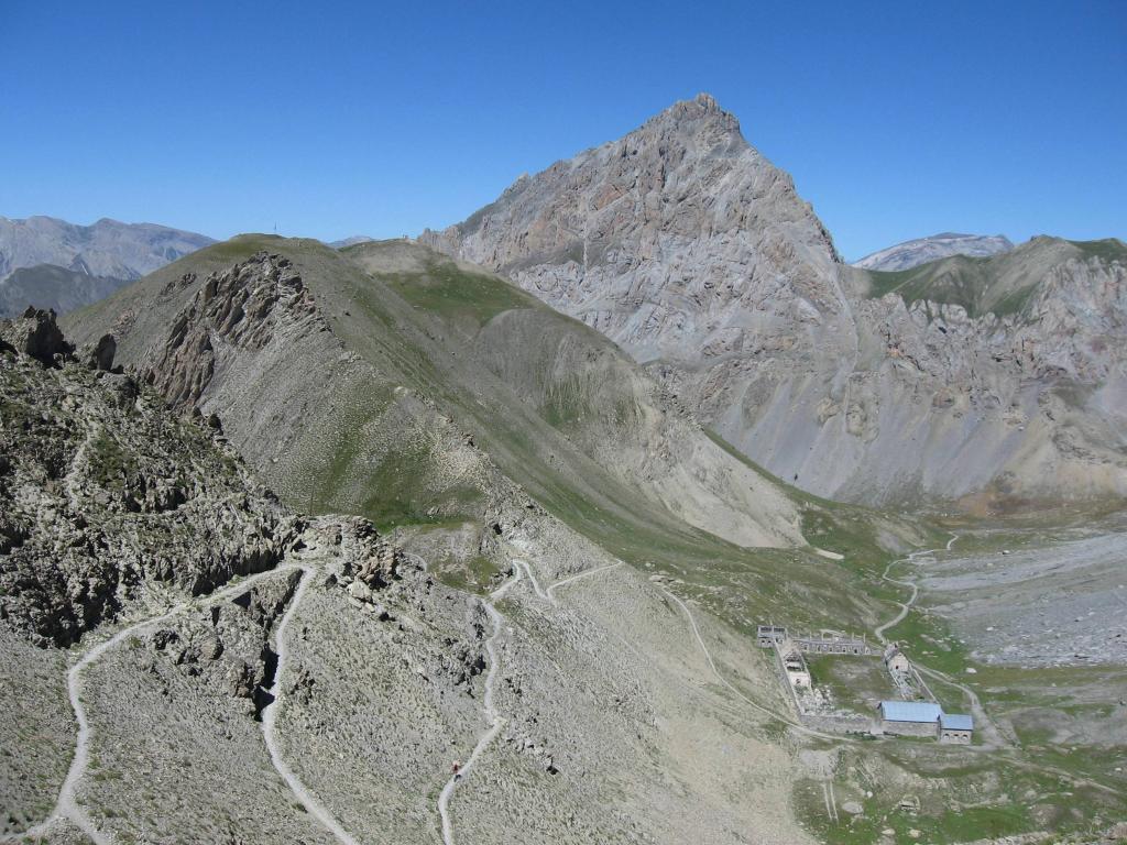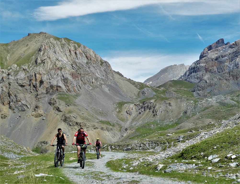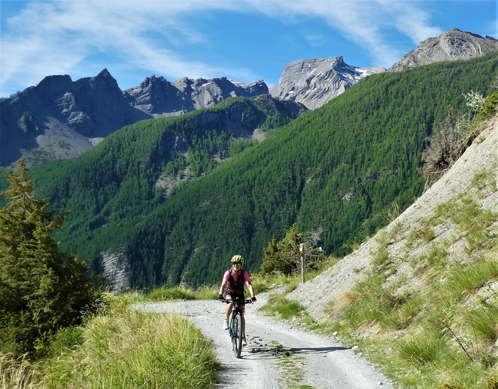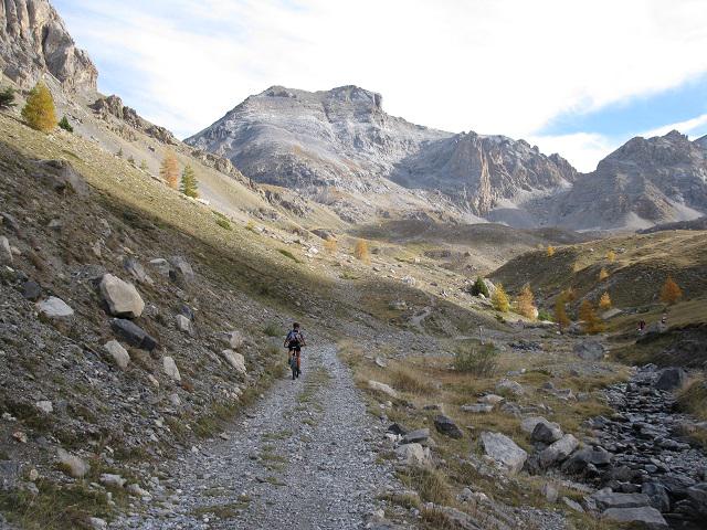 Dietro la caserma parte il sentiero che porta dapprima al Col de Mallemort (2568 m.) e successivamente, con una buona ciclabilità per chi è allenato al Col de Viraysse (2721 m).