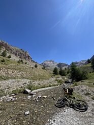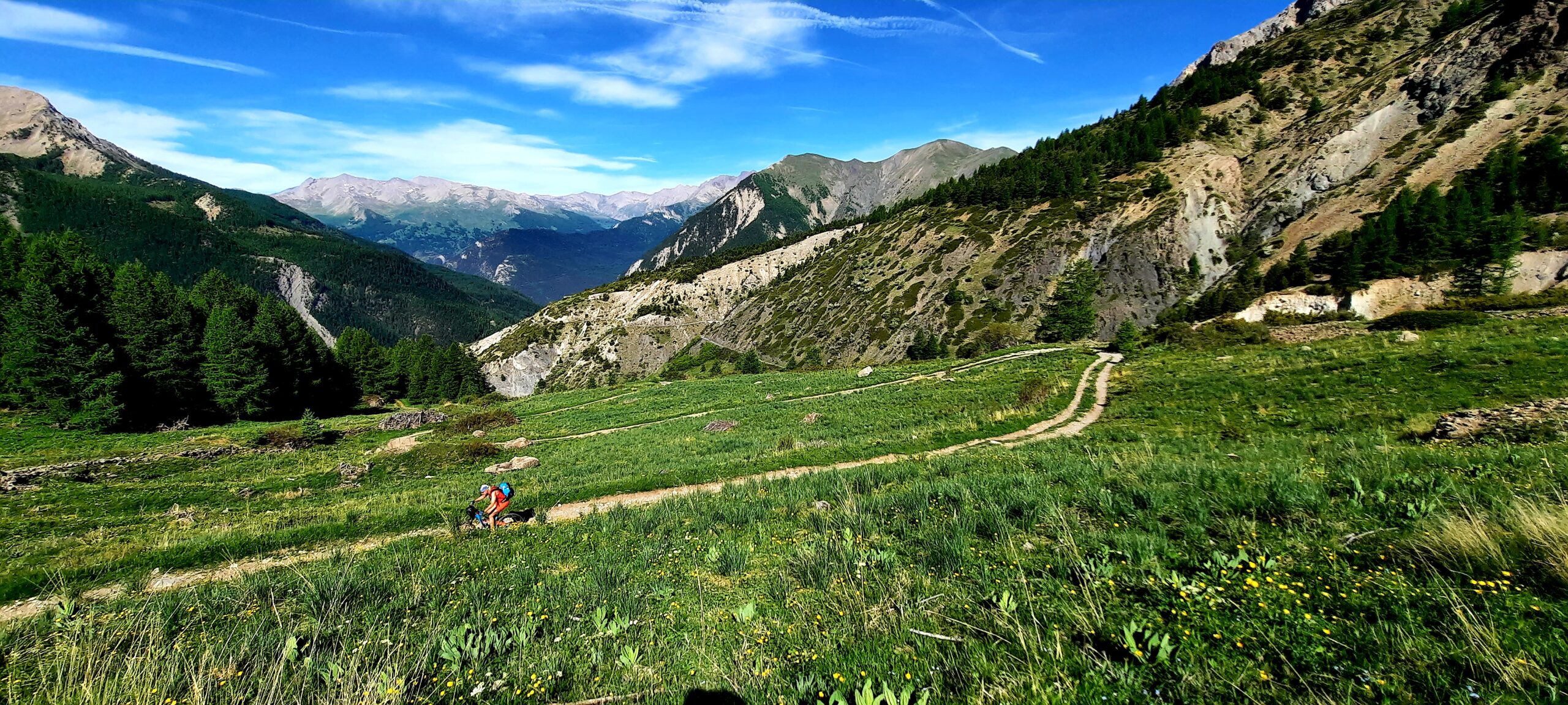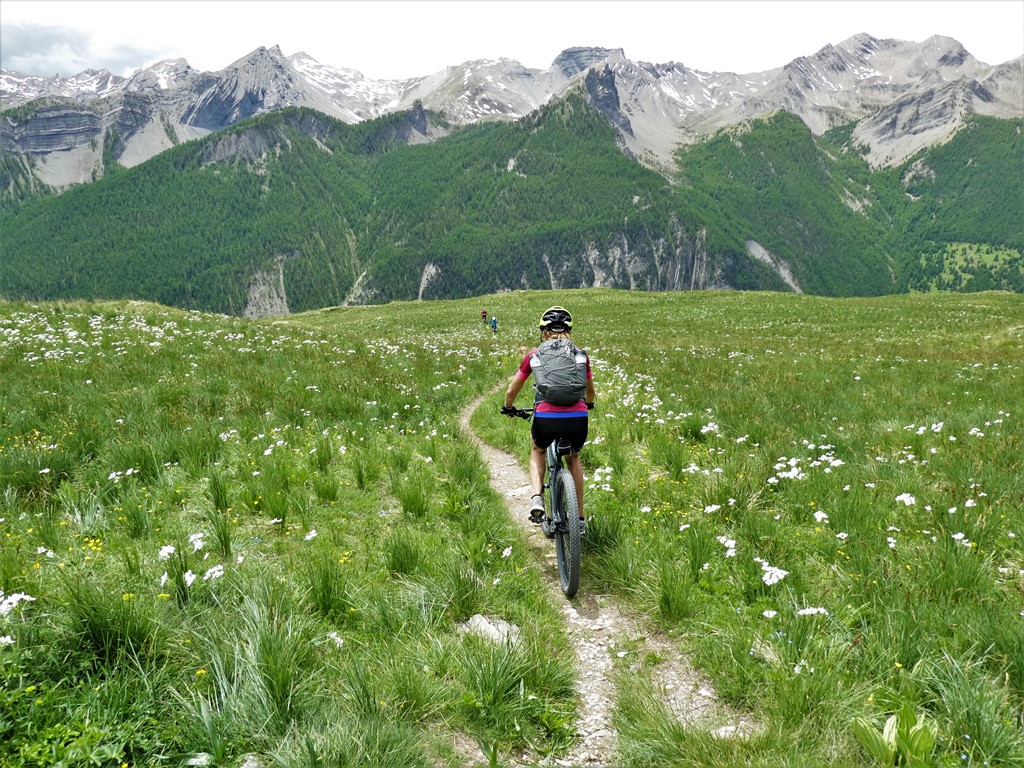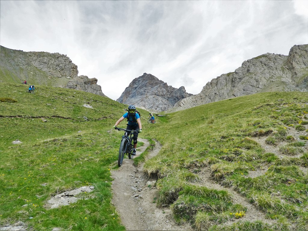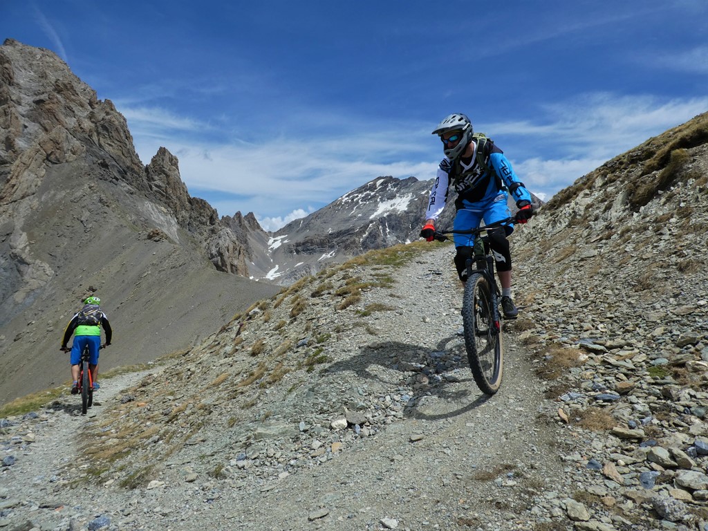 Da qui il panorama è veramente vastissimo e splendido ed è d’obbligo fermarsi qualche minuto a goderselo! Poi possiamo goderci la meravigliosa discesa, dapprima sul sentiero di salita fino al Col de Mallemort poi da questo decidendo se ridiscendere per l’itinerario di salita oppure inoltrarsi sullo spettacolare sentiero che parte alla nostra sinistra e conduce con circa 1000 metri di discesa su single track all’abitato di Larche