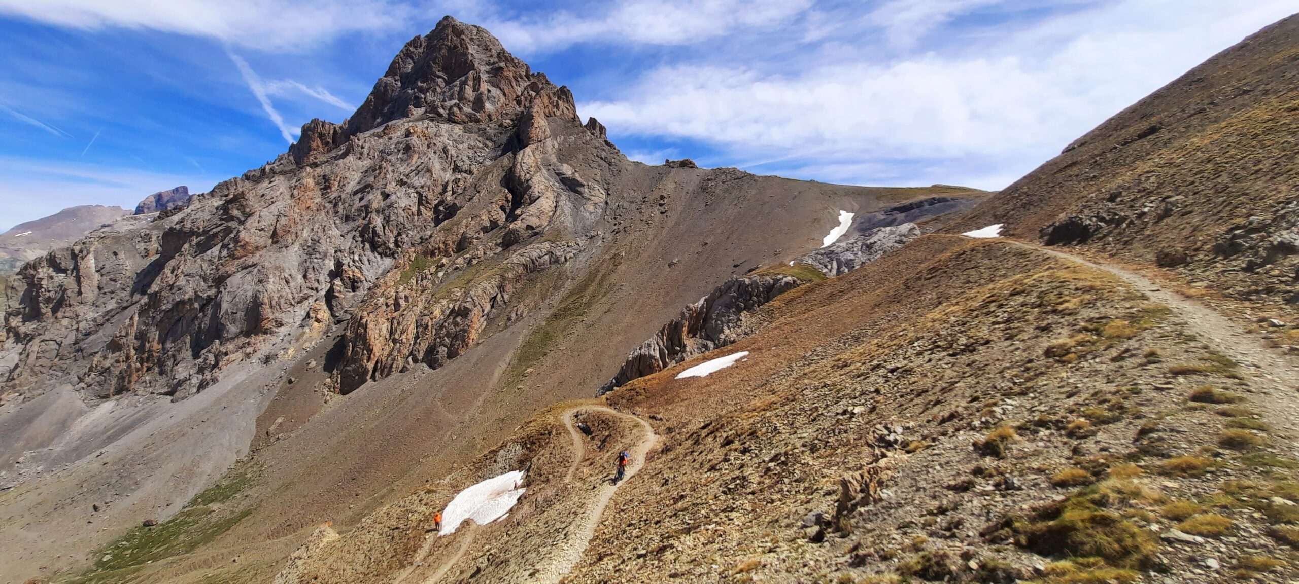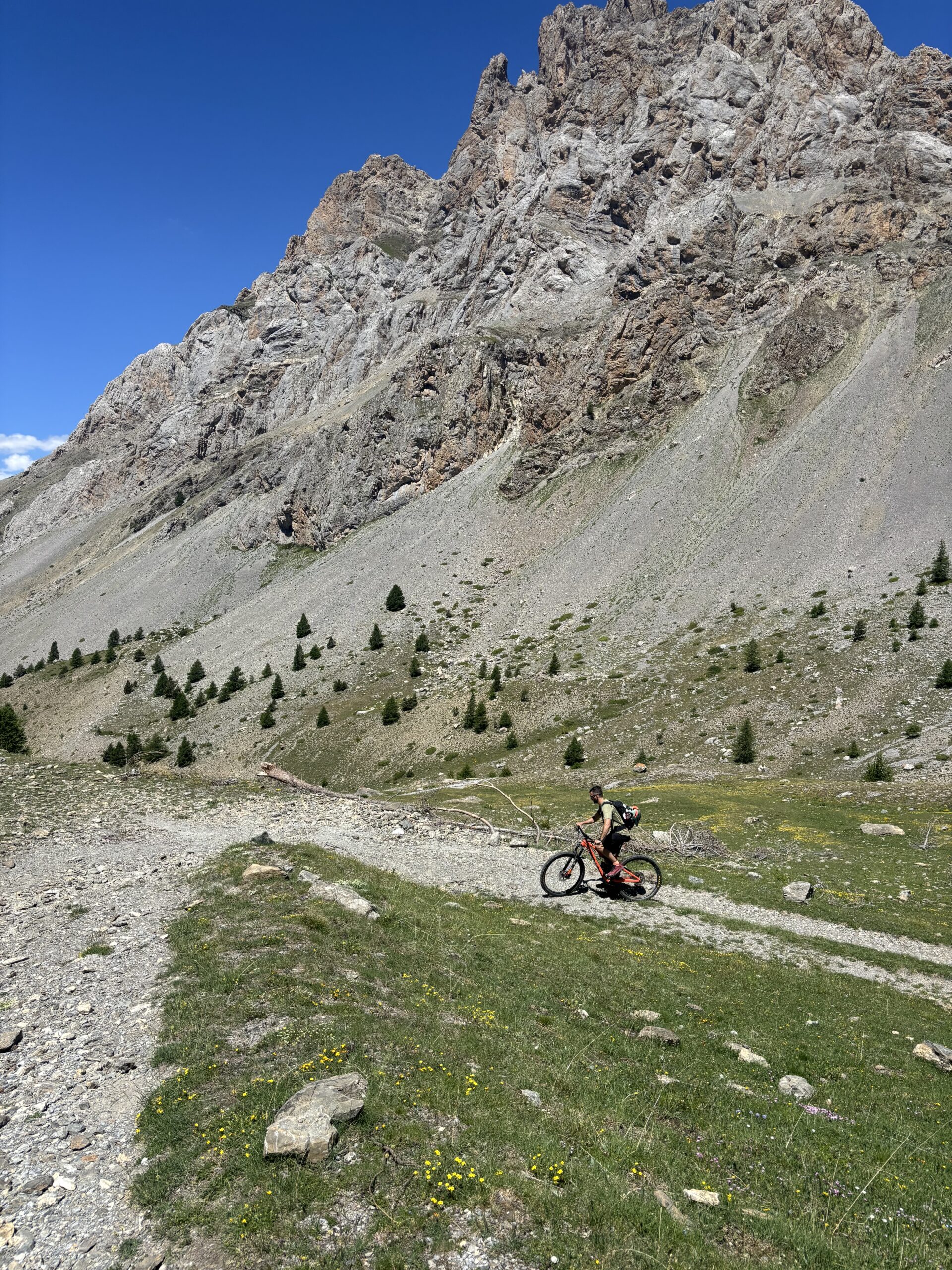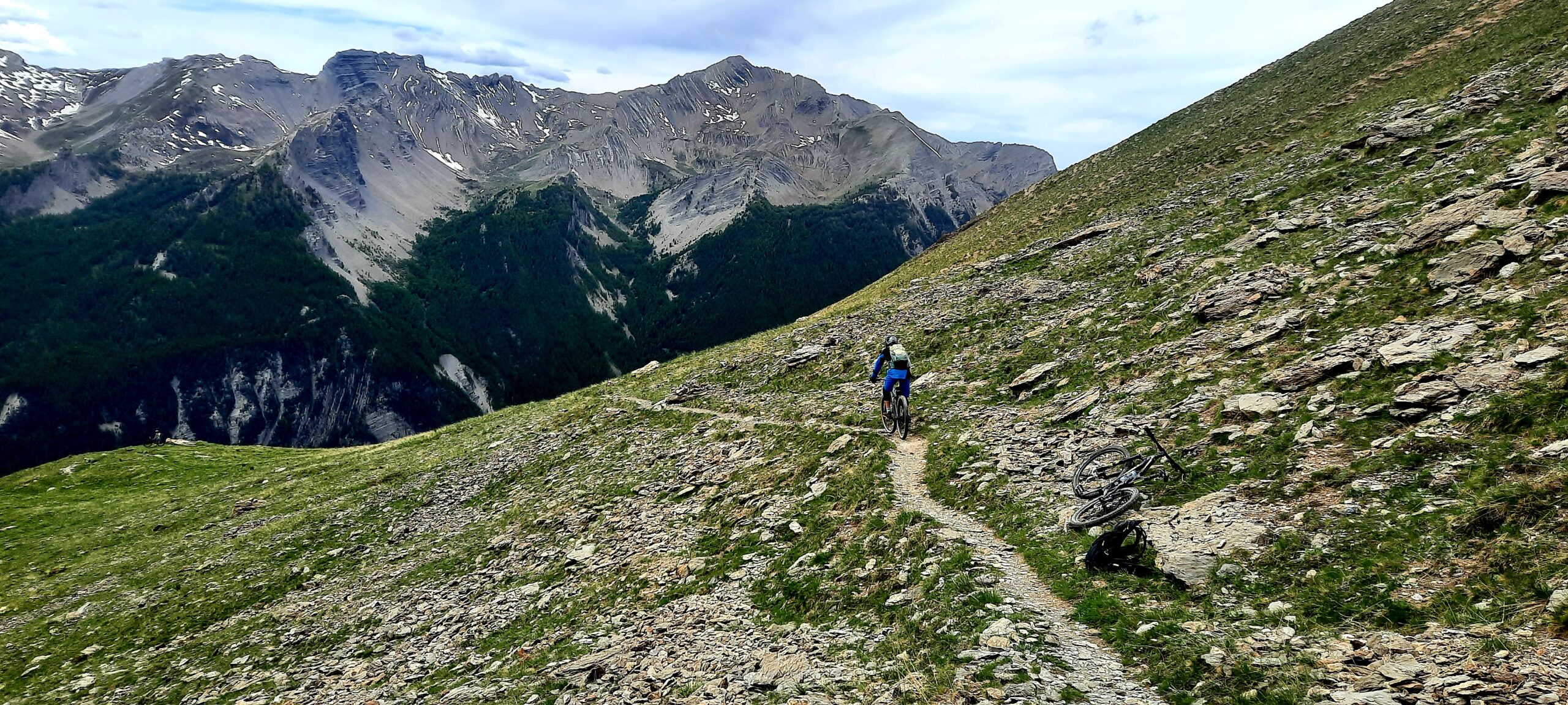 Da qui il panorama è veramente vastissimo e splendido ed è d’obbligo fermarsi qualche minuto a goderselo! Poi possiamo goderci la meravigliosa discesa, dapprima sul sentiero di salita fino al Col de Mallemort poi da questo decidendo se ridiscendere per l’itinerario di salita oppure inoltrarsi sullo spettacolare sentiero che parte alla nostra sinistra e conduce con circa 1000 metri di discesa su single track all’abitato di Larche
