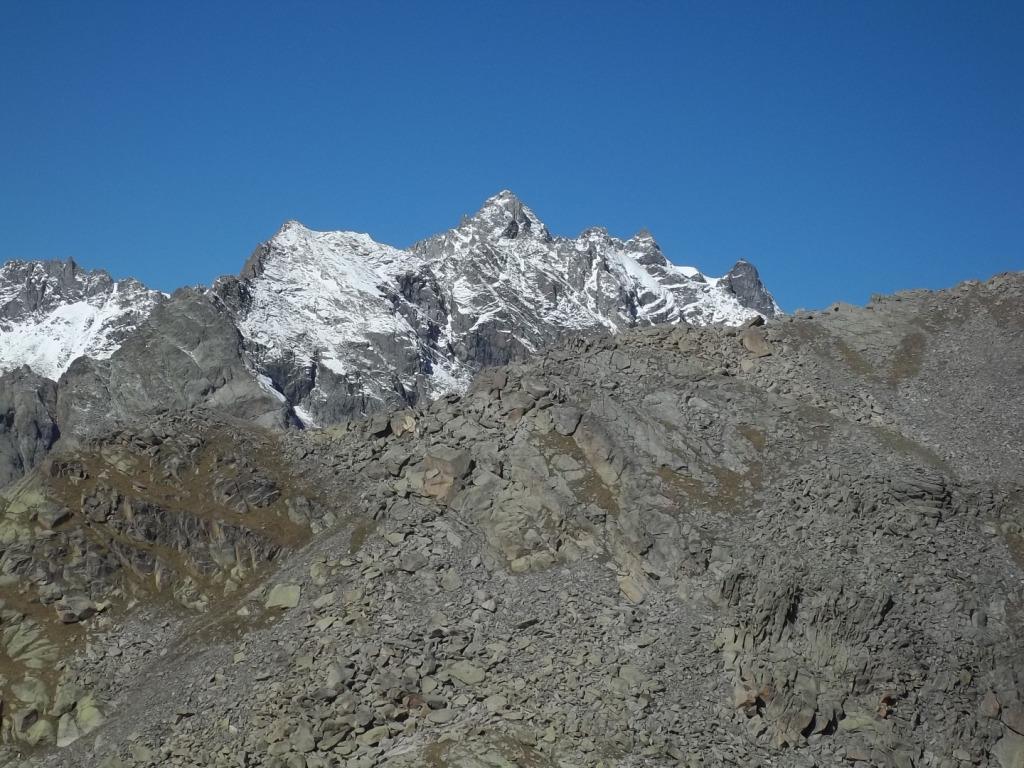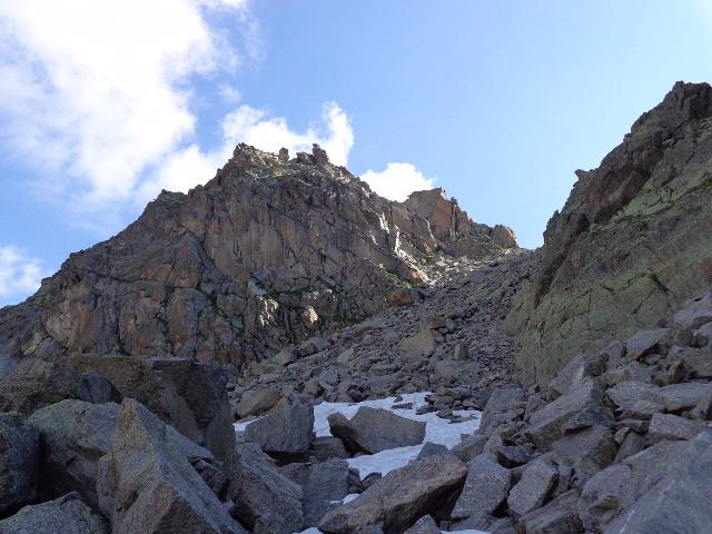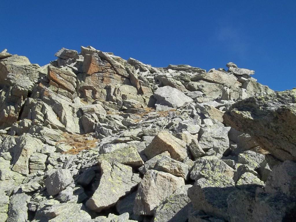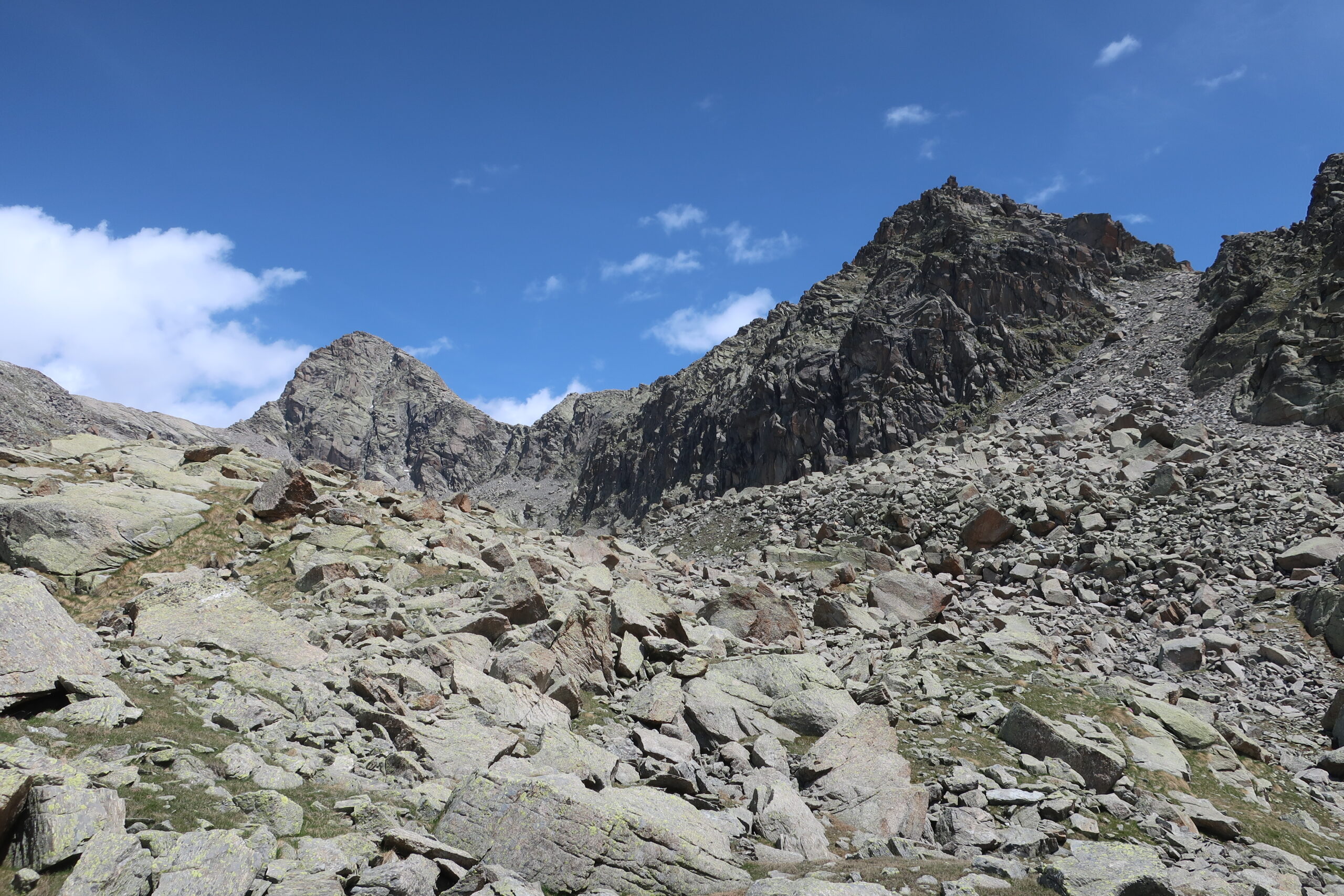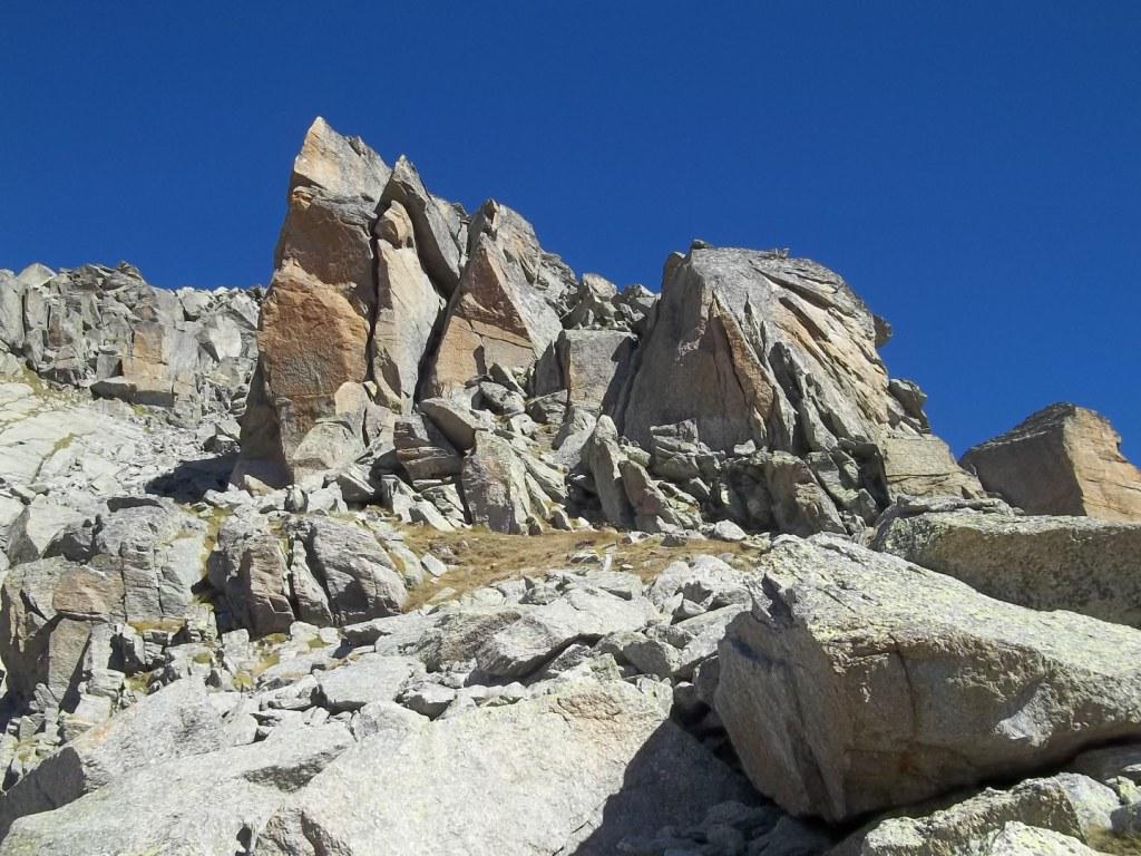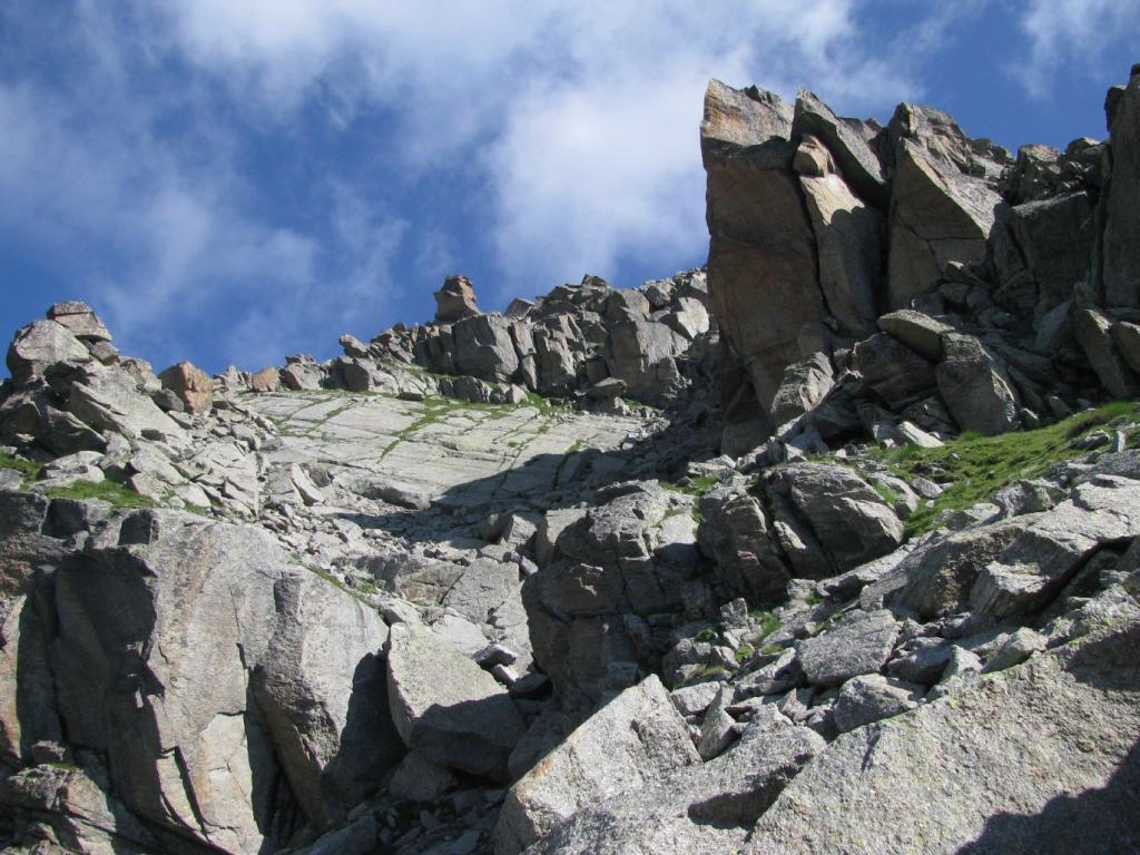 Ci si dirige al colletto sotto alla Virginea e tra grossa pietraia prima e pendio di sfasciumi poi lo si raggiunge.Da qui con una divertente arrampicata sulla sx della vetta si raggiunge la Punta Virginea 2874m