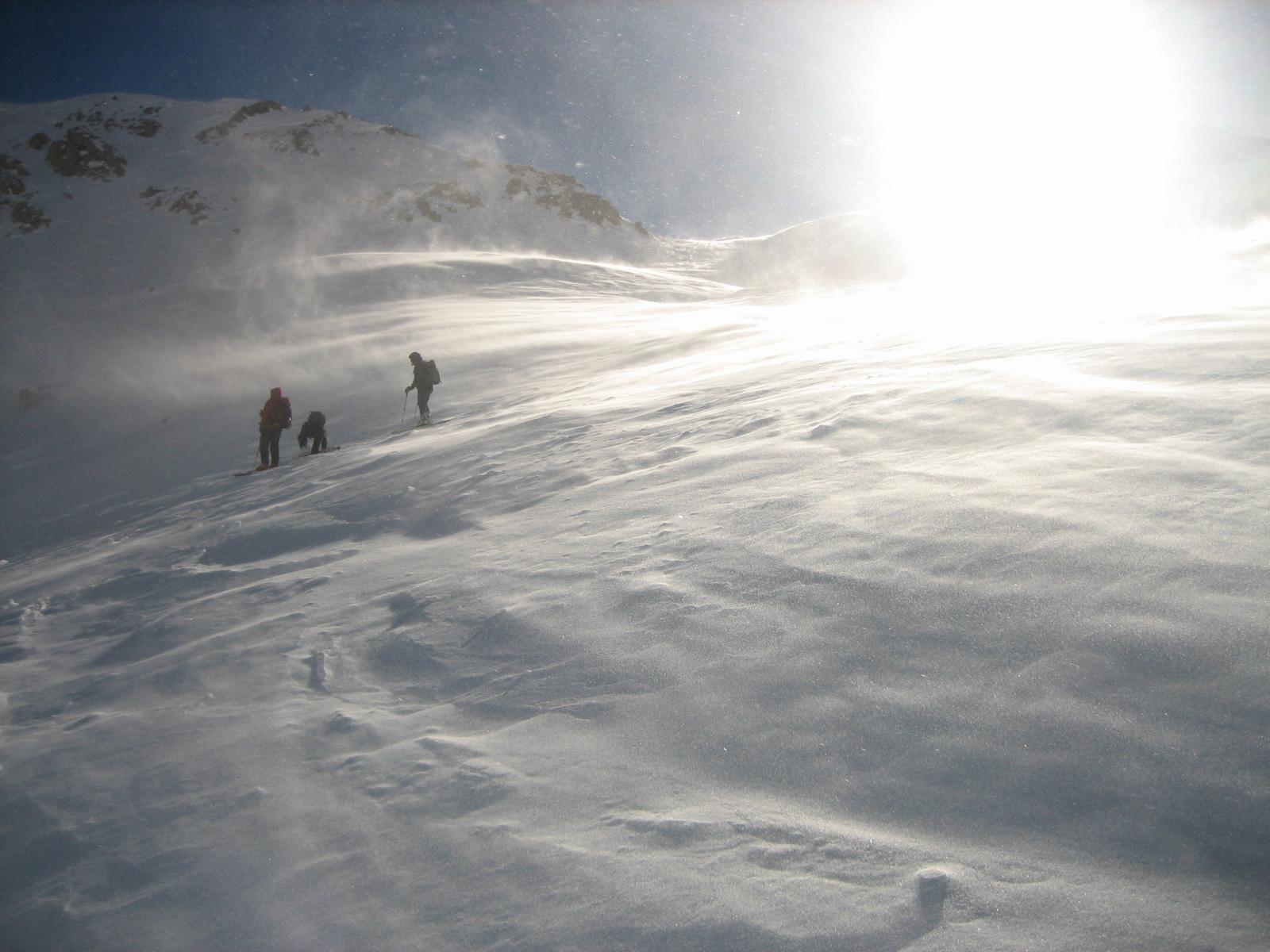 Durante la discesa il forte vento si è risvegliato prepotentemente, sollevando turbini di neve impressionanti.