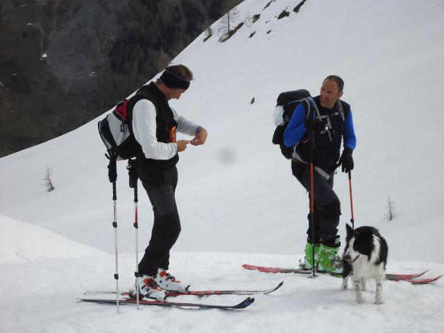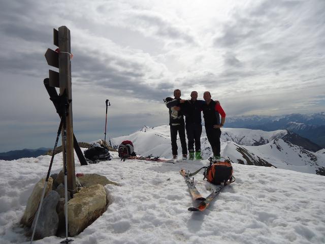 Oggi con Davide e Paolo con Argo al seguito. Un saluto alla coppia di Skialper Caragliesi che ci ha preceduto in vetta al Viribianc