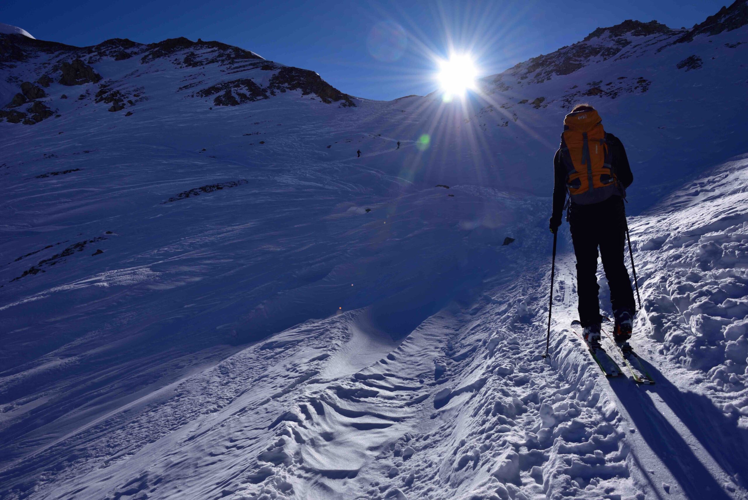 Discesa entusiasmante su neve vergine, ampi spazi intonsi (solo una decina di tracce di discesa).